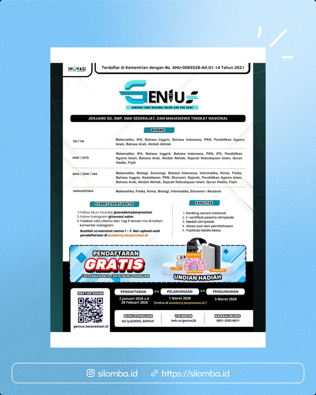 #GENIUS2026 #OlimpiadeNasional #OlimpiadePelajar #OlimpiadeMahasiswa