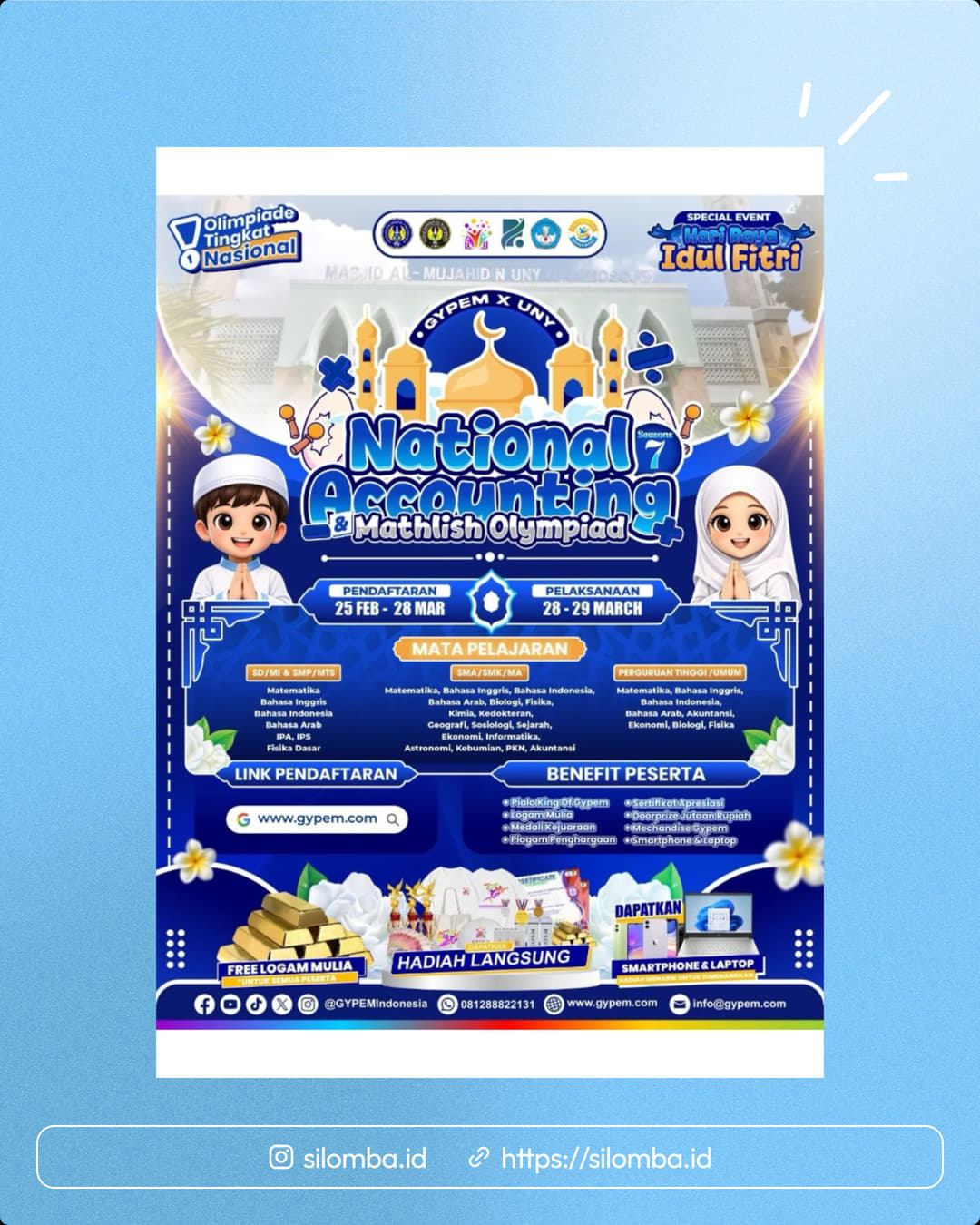 Melalui event NAMO, GYPEM Indonesia bersama BEM FMIPA Universitas Negeri Yogyakarta menghadirkan ๐๐๐ญ๐ข๐จ๐ง๐๐ฅ ๐๐๐๐จ๐ฎ๐ง๐ญ๐ข๐ง๐ ๐๐๐ญ๐ก๐ฅ๐ข๐ฌ๐ก ๐๐ฅ๐ฒ๐ฆ๐ฉ๐ข๐๐ sebagai ajang kompetisi nasional untuk mengasah logika dan ketelitianmu.