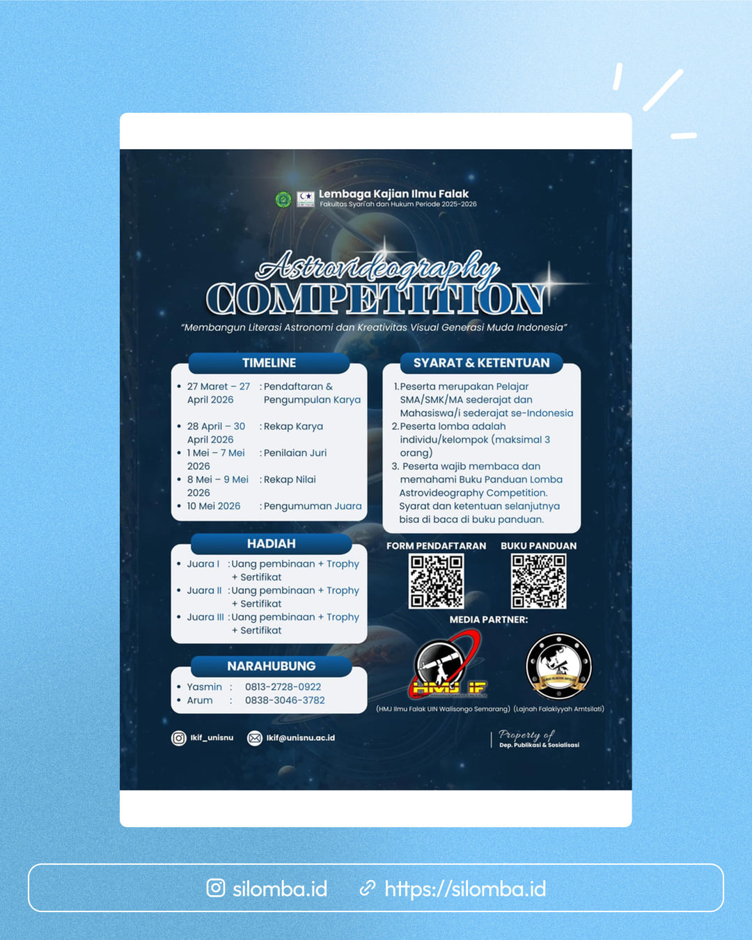 Peserta adalah pelajar SMA/SMK/MA atau Mahasiswa/i aktif se-Indonesia.