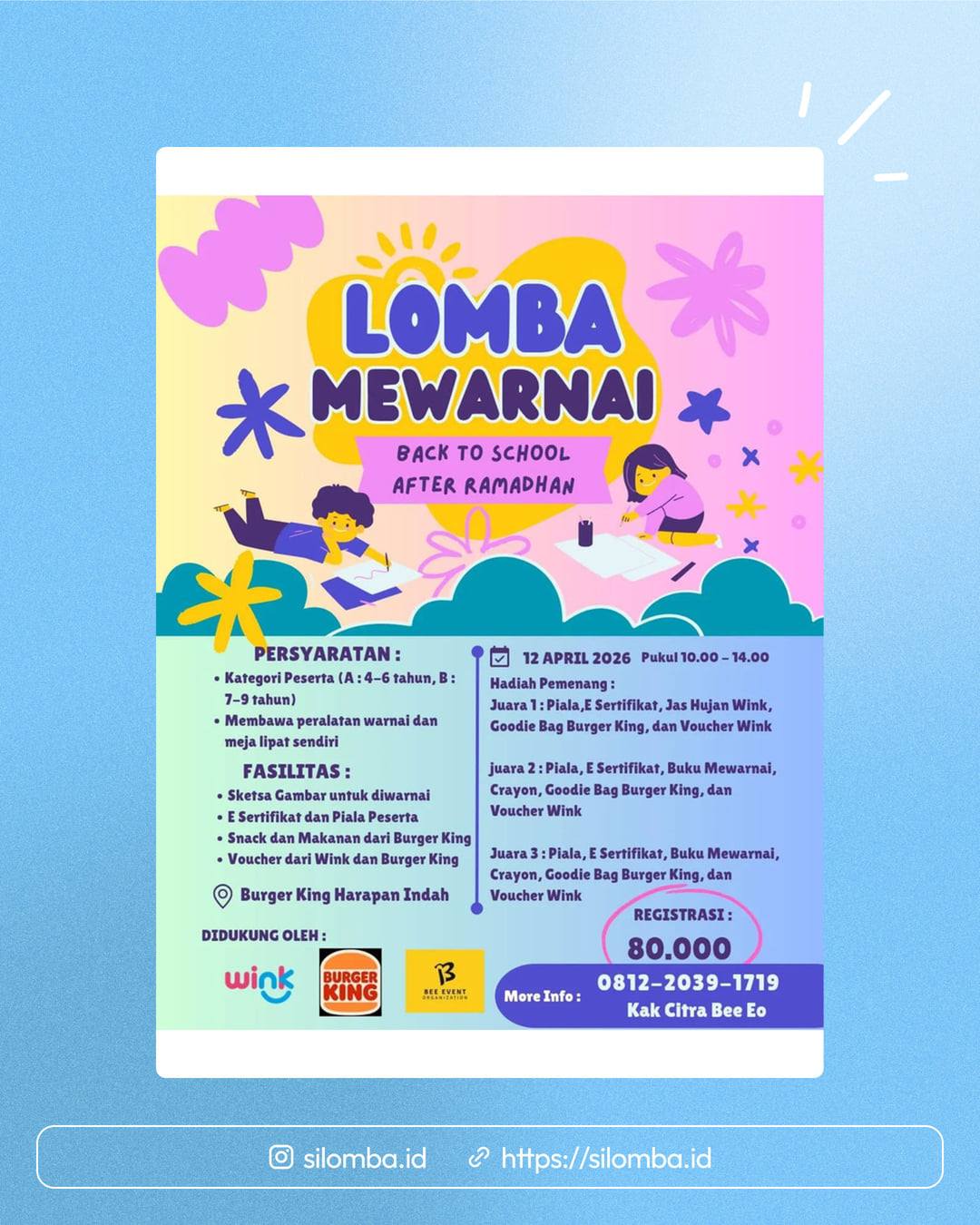 Silomba hanya media informasi lomba. Untuk info lebih lanjut, silakan hubungi penyelenggara.
