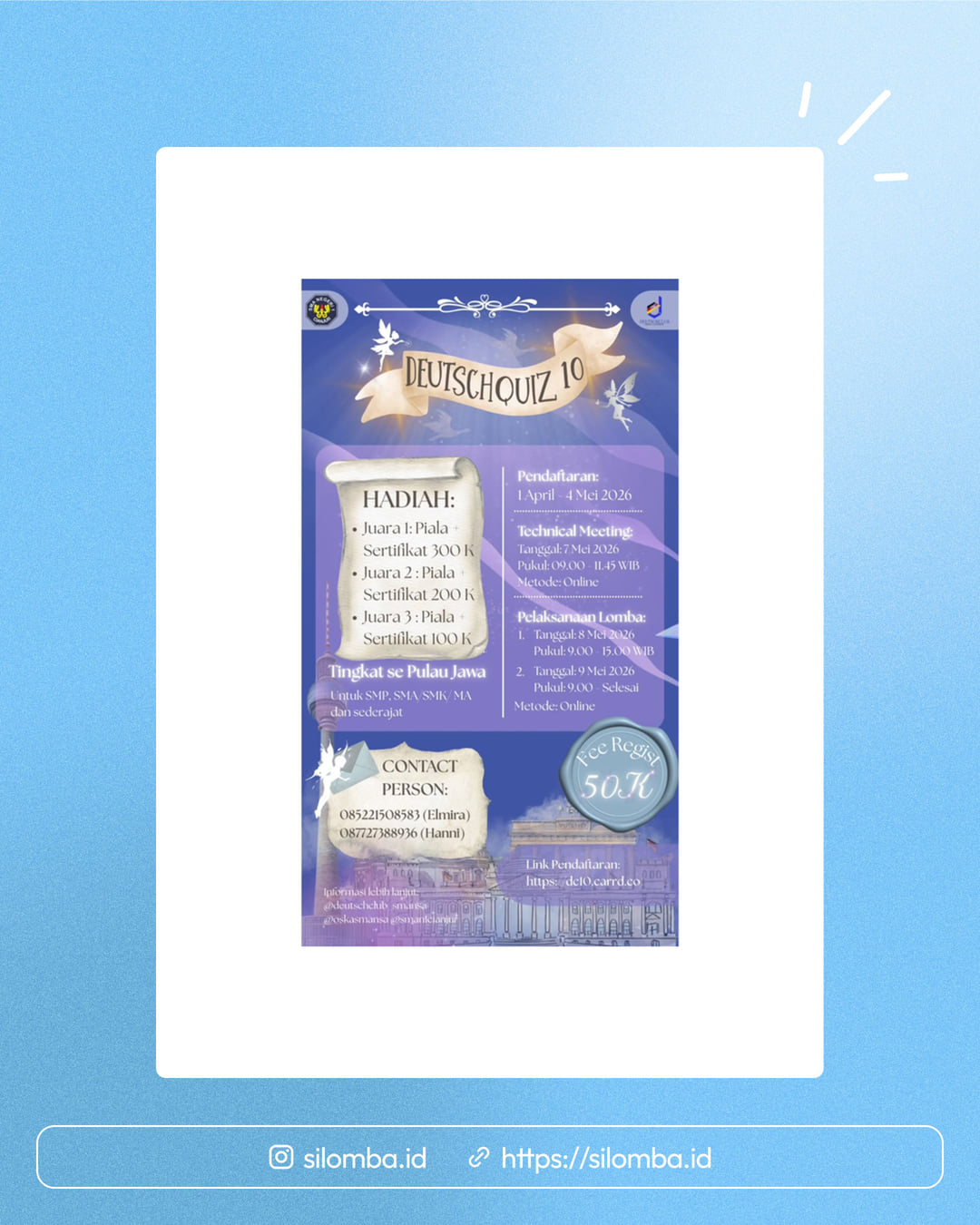 Silomba hanya media informasi lomba. Untuk info lebih lanjut, silakan hubungi penyelenggara.