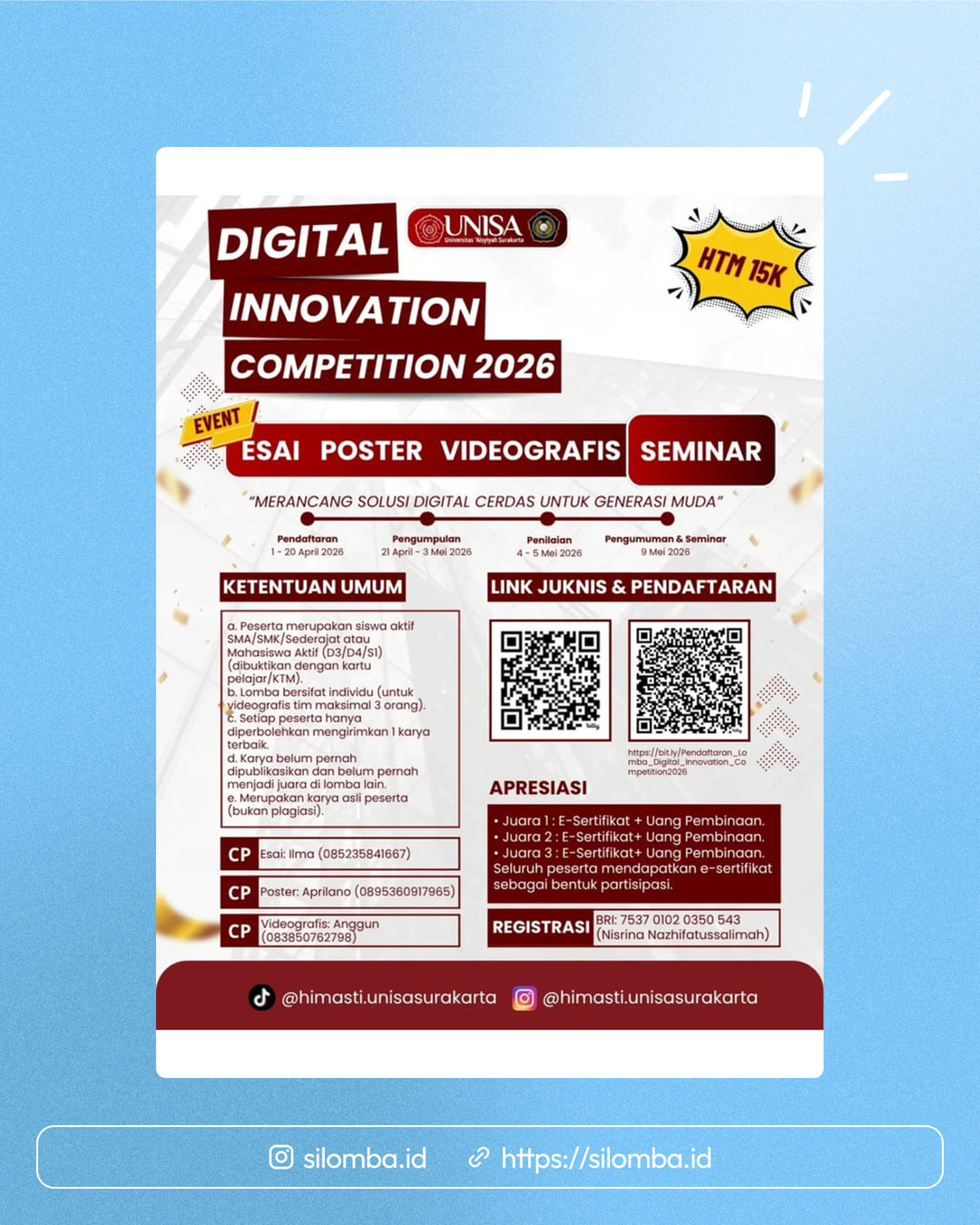 Peserta merupakan siswa aktif SMA/SMK sederajat atau Mahasiswa (D3/D4/S1) (dibuktikan dengan kartu pelajar/KTM).