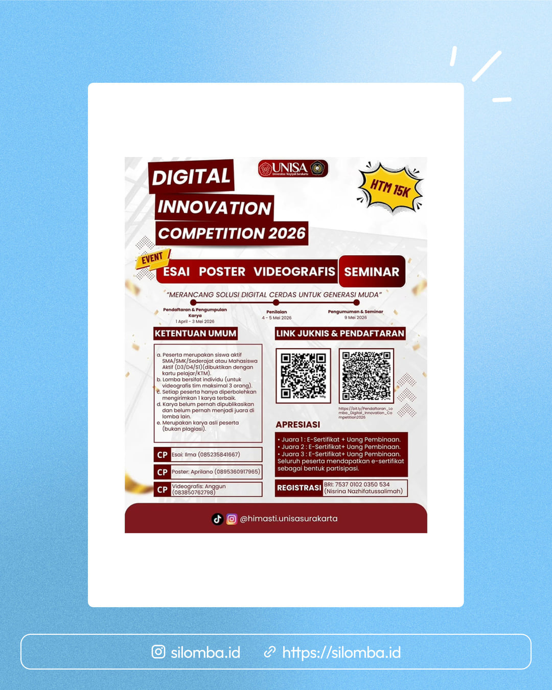Peserta merupakan siswa aktif SMA/SMK/Sederajat (dibuktikan dengan kartu pelajar/KTM).