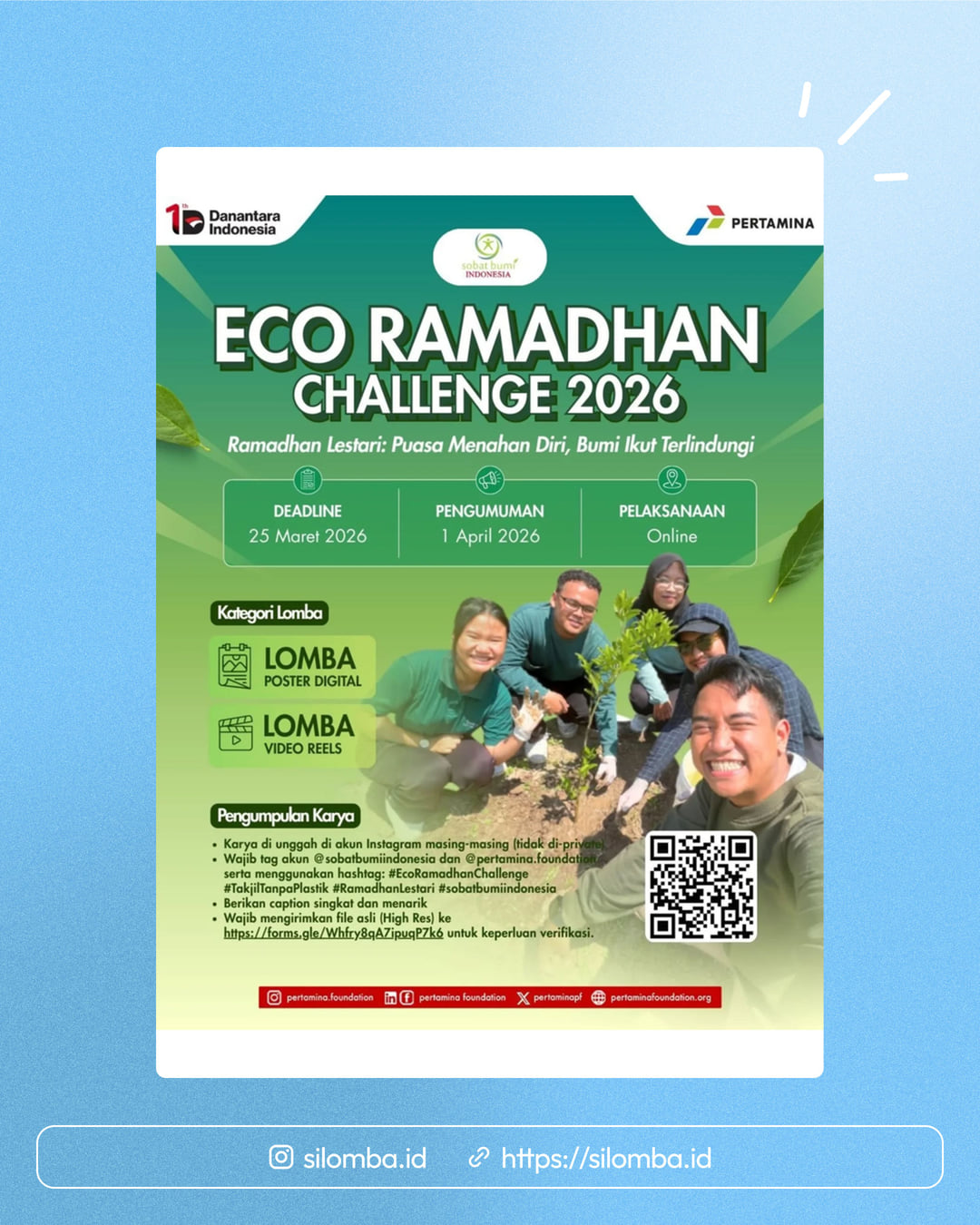 Yuk ikutan #EcoRamadhanChallenge2026 bareng Pertamina Foundation & Sobat Bumi Indonesia lewat: