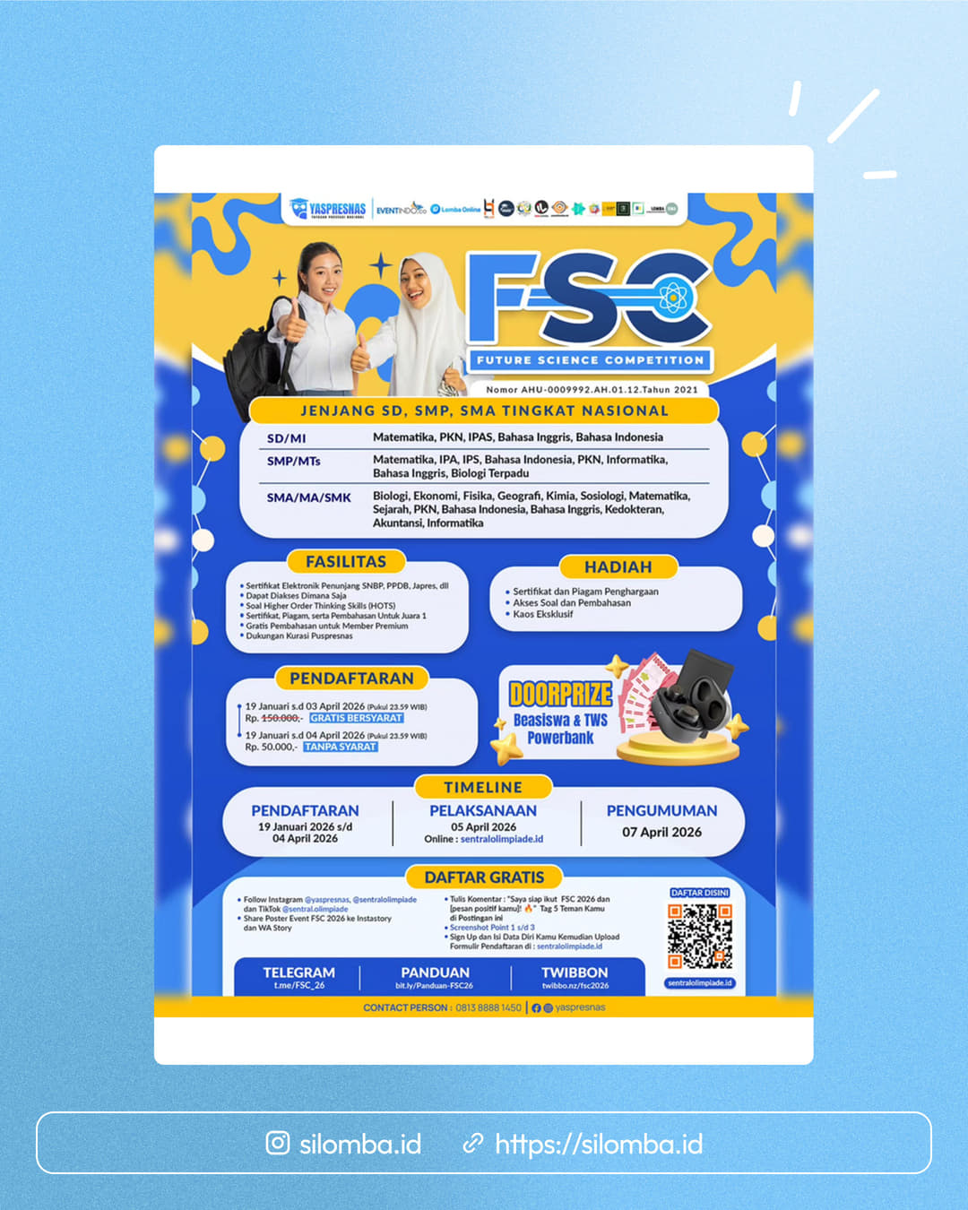 Silomba hanya media informasi lomba. Untuk info lebih lanjut, silakan hubungi penyelenggara.
