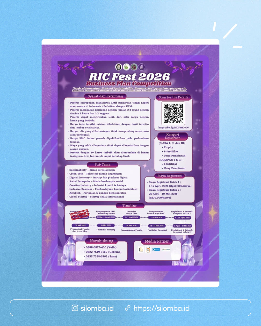 Sekarang saatnya kamu ikut ambil bagian dalam Business Plan Competition RIC FEST 2026 πΌπ