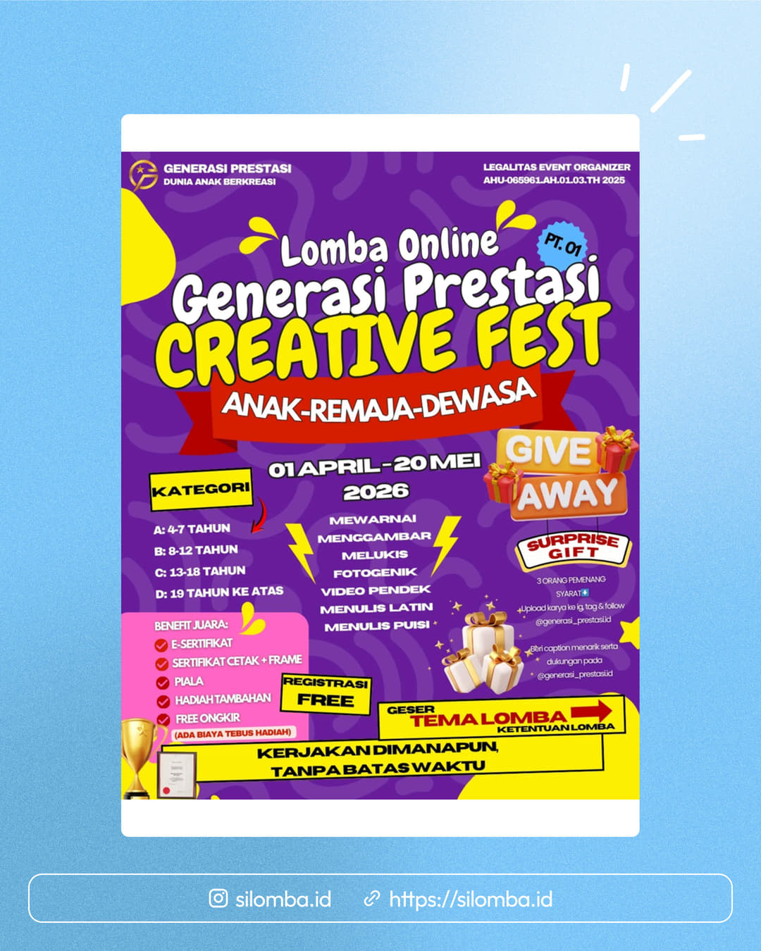 Silomba hanya media informasi lomba. Untuk info lebih lanjut, silakan hubungi penyelenggara.