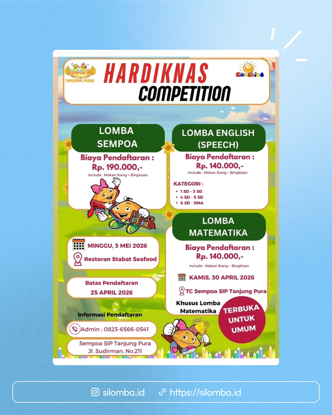 Silomba hanya media informasi lomba. Untuk info lebih lanjut, silakan hubungi penyelenggara.