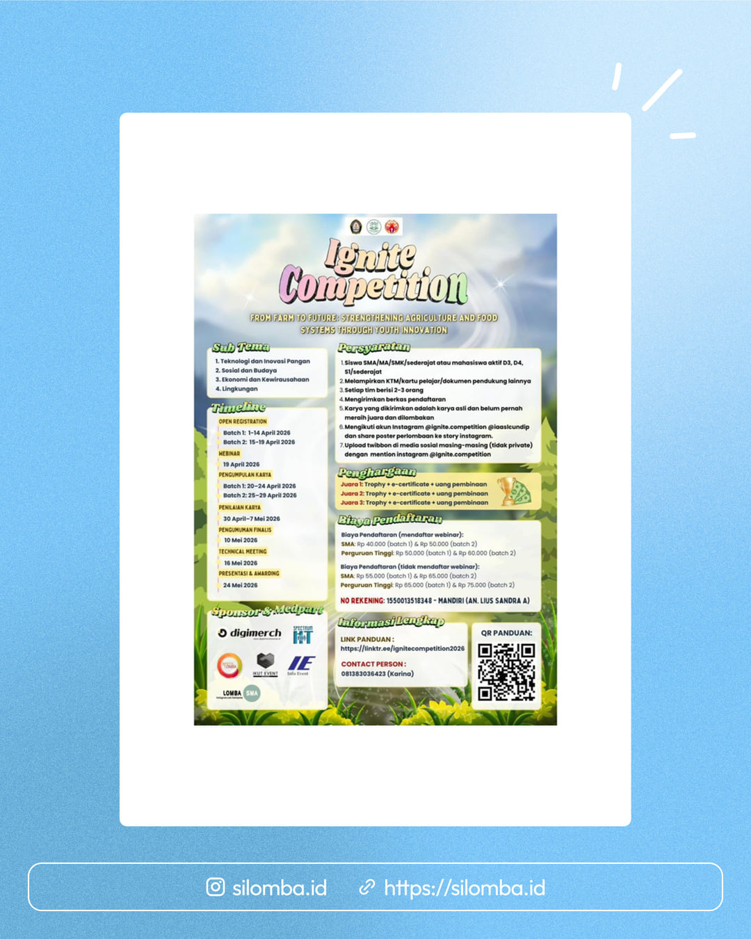 Karya yang dikirimkan adalah karya asli dan belum pernah meraih juara dan dipublikasikanMengikuti akun Instagram @ignite.competition @iaaslcundip dan share poster perlombaan ke story instagramUpload twibbon di media sosial masing-masing (tidak private) dengan mention Instagram @ignite.competition