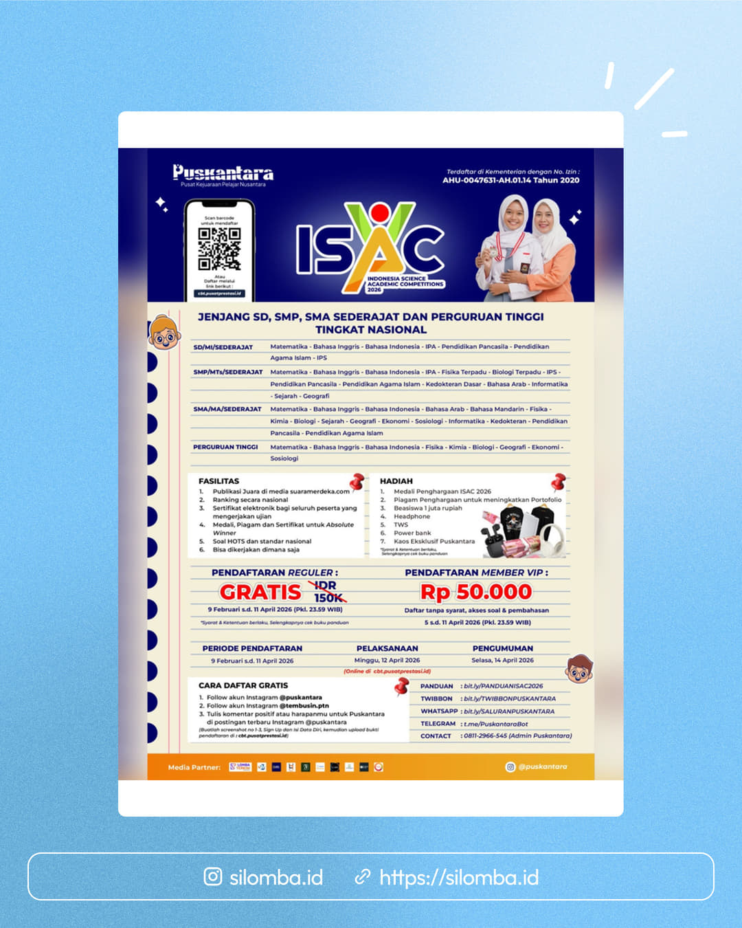 Piagam Penghargaan untuk meningkatkan Portofolio, Beasiswa 1 juta rupiah, Headphone, TWS, Power Bank, T-shirt eksklusif Puskantara