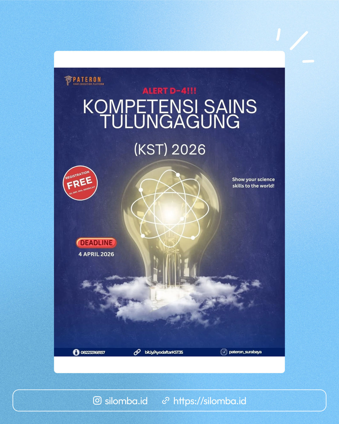 Kompetensi Sains Tulungagung (KST) 2026 segera ditutup!