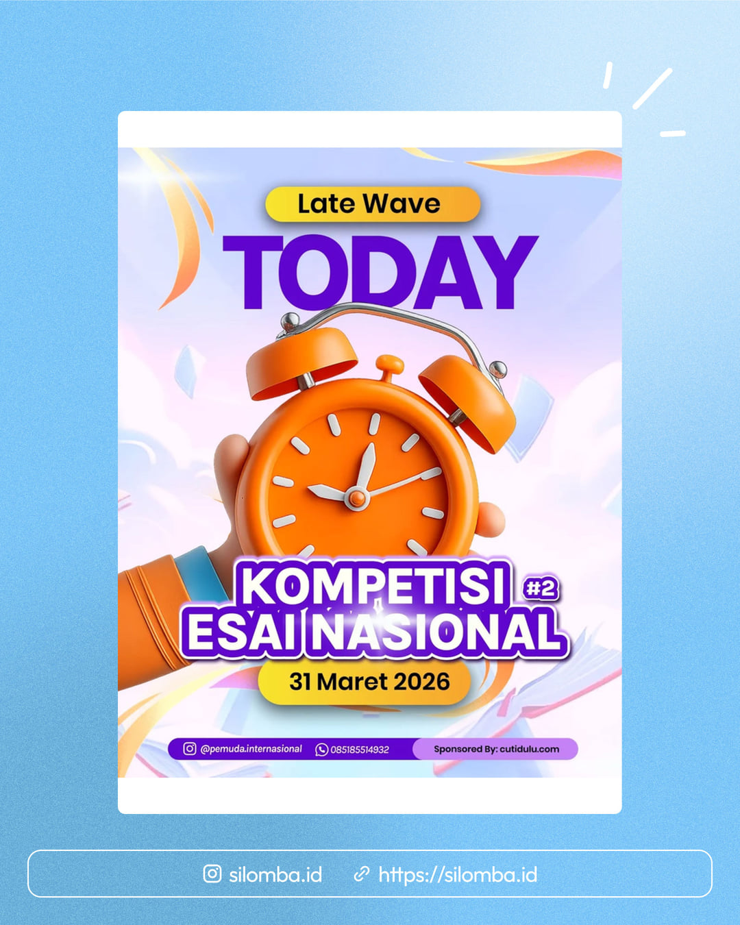 Silomba hanya media informasi lomba. Untuk info lebih lanjut, silakan hubungi penyelenggara.