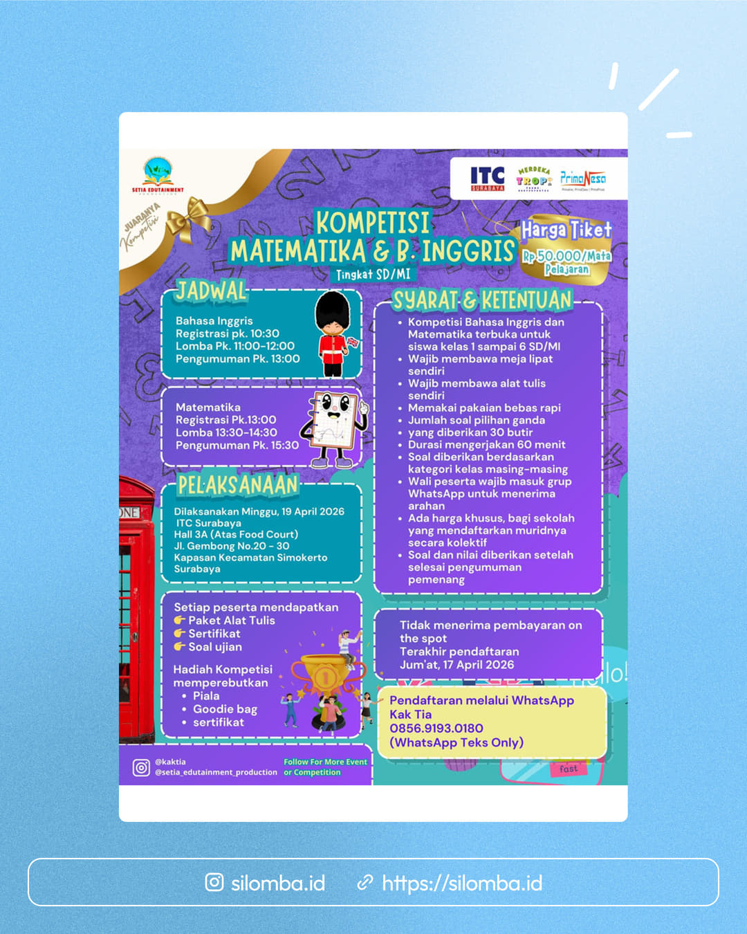 Wajib membawa meja lipat sendiriWajib membawa alat tulis sendiriMemakai pakaian bebas rapiWali peserta wajib masuk grup WhatsApp untuk menerima arahan