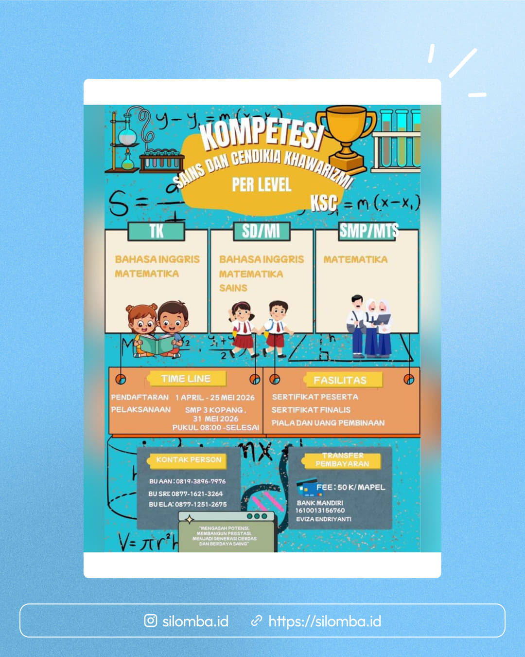 Silomba hanya media informasi lomba. Untuk info lebih lanjut, silakan hubungi penyelenggara.