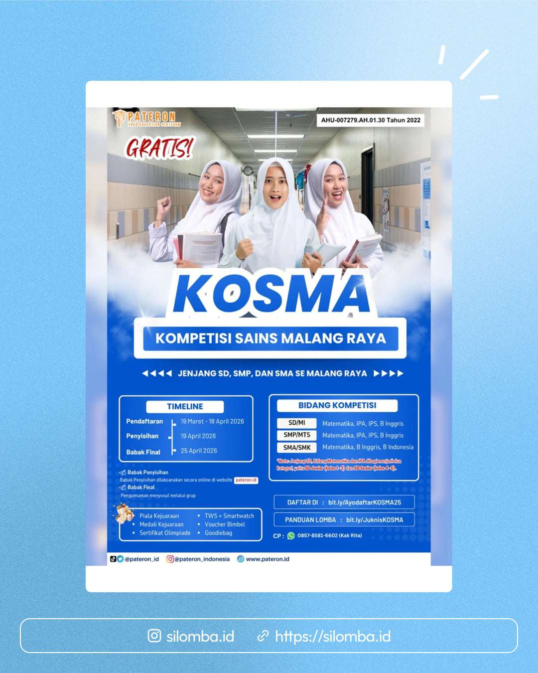 Mengikuti bidang lomba: Matematika, Bahasa Indonesia, Bahasa Inggris