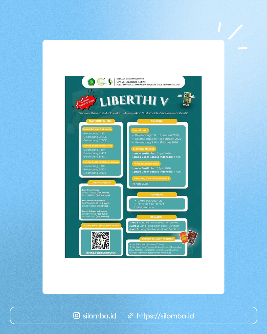 Silomba hanya media informasi lomba. Untuk info lebih lanjut, silakan hubungi penyelenggara.