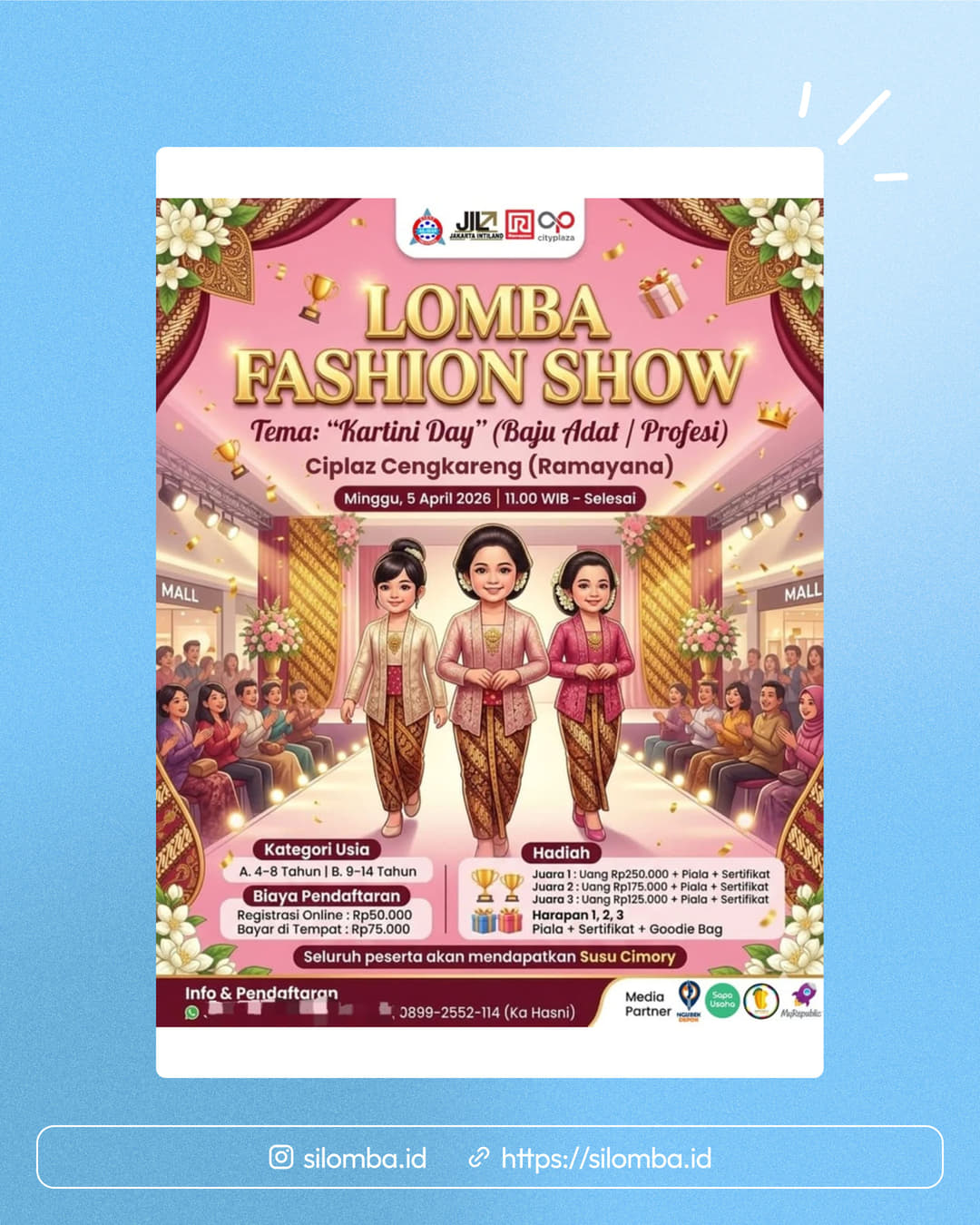 Uang tunai 250k, piala, sertifikat, goodybag