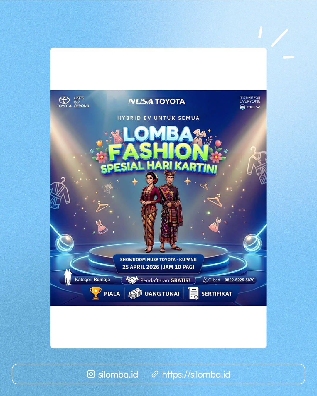 Buat sobat Nusa Toyota yang punya bakat fashion segera daftarkan diri kalian dan menangkan hadiah menarik lainnya..