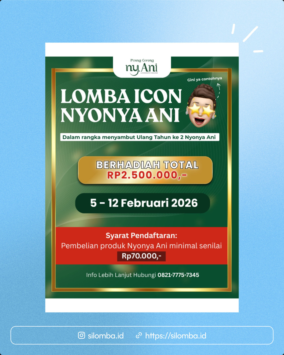 Yuk kumpul disini kalau kamu jago bikin icon yang keren. Dalam rangka menyambut perjalanan ke 2 Tahun Nyonya Ani, lomba Icon Nyonya Ani resmi dibuka untuk umum.