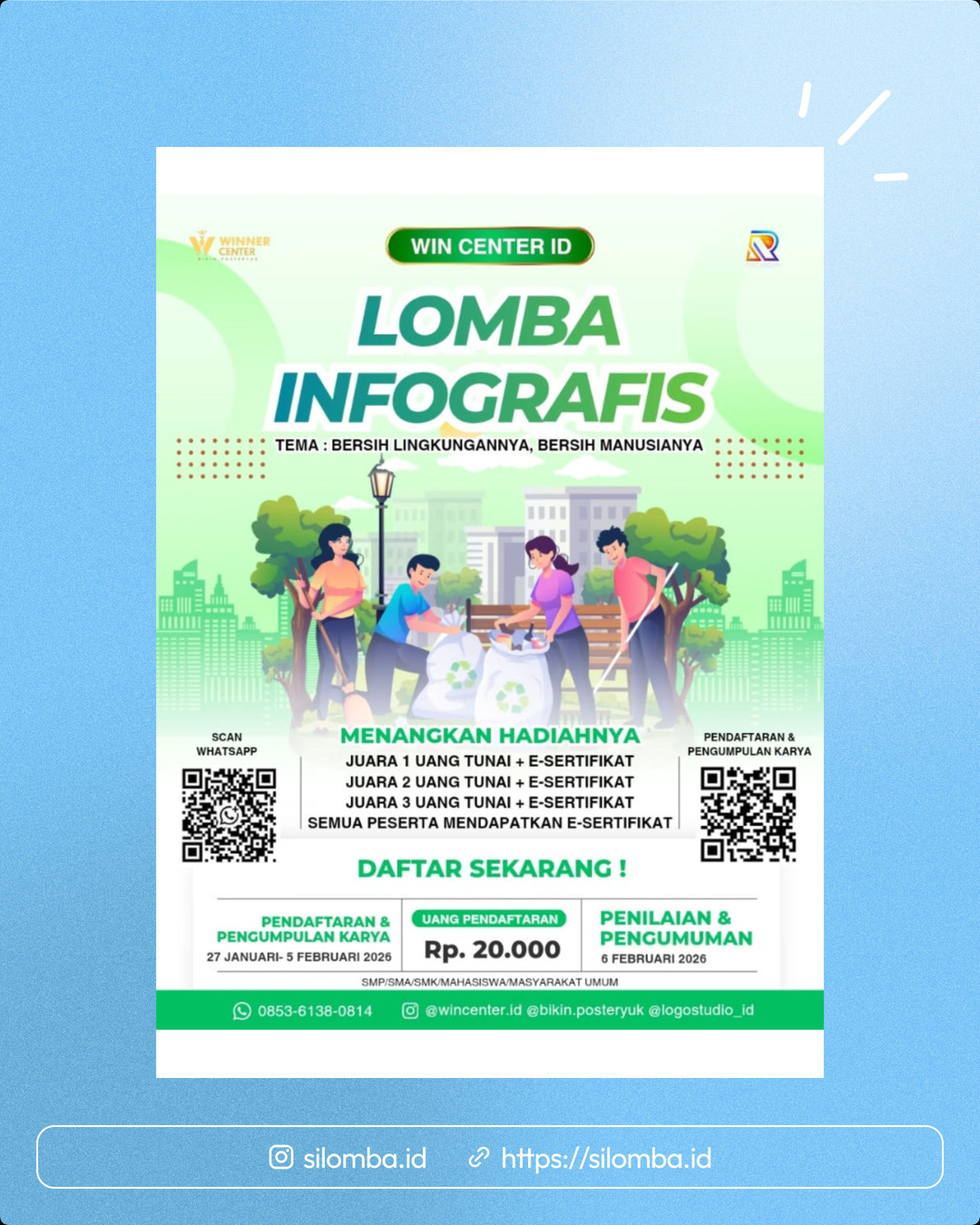Lomba Infografis dengan tema “Bersih Lingkungannya, Bersih Manusianya” resmi dibuka! 📢