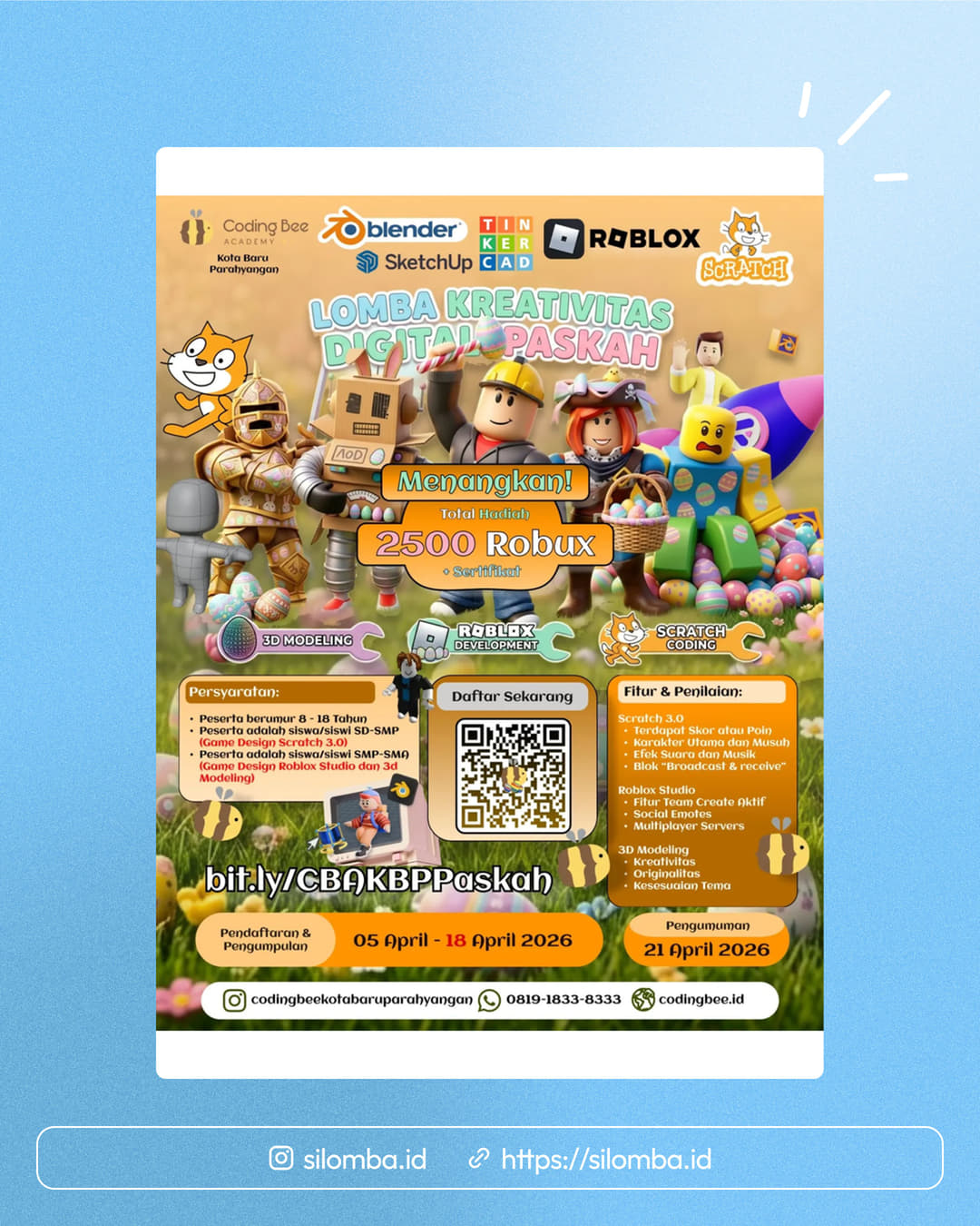 Berumur 8 - 18 TahunPeserta adalah siswa/siswi SD-SMP (Game Design Scratch 3.0)
