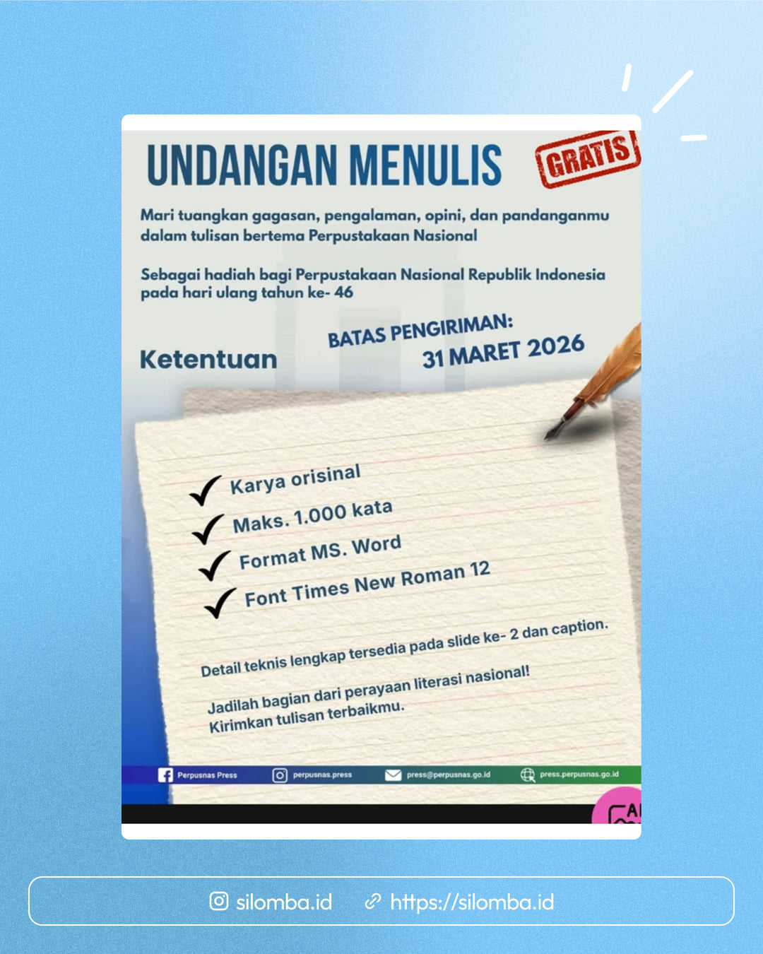 Karya orisinalPanjang tulisan maksimal 1.000 kataFormat file MS WordFont Times New Roman 12