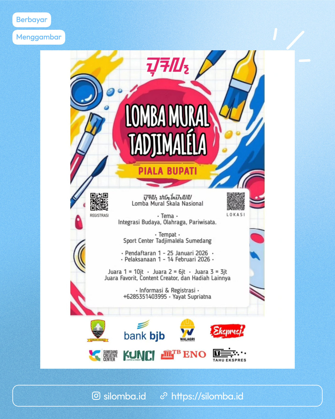 • Cat primer + black & white untuk lomba disediakan oleh panitia.