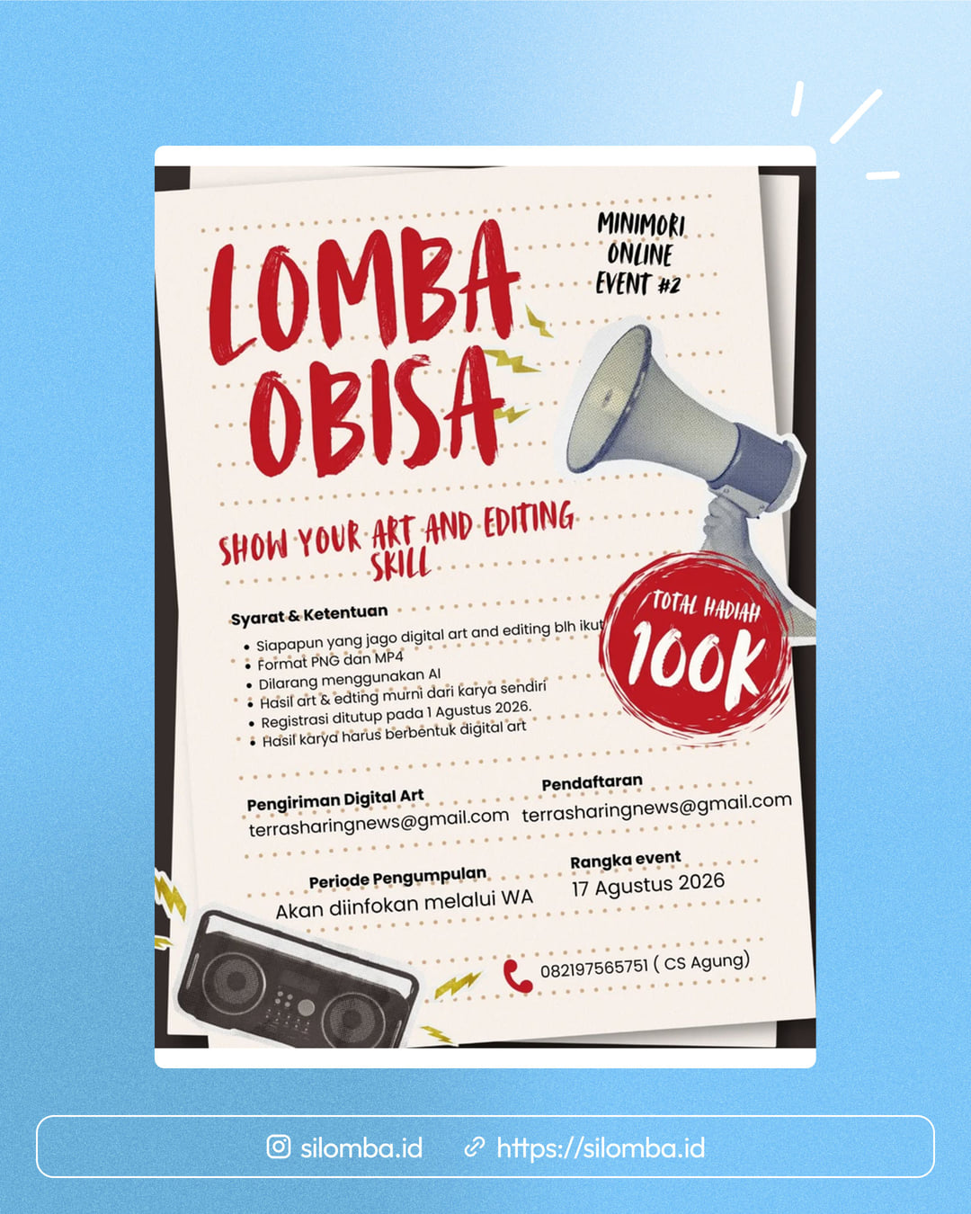 Silomba hanya media informasi lomba. Untuk info lebih lanjut, silakan hubungi penyelenggara.