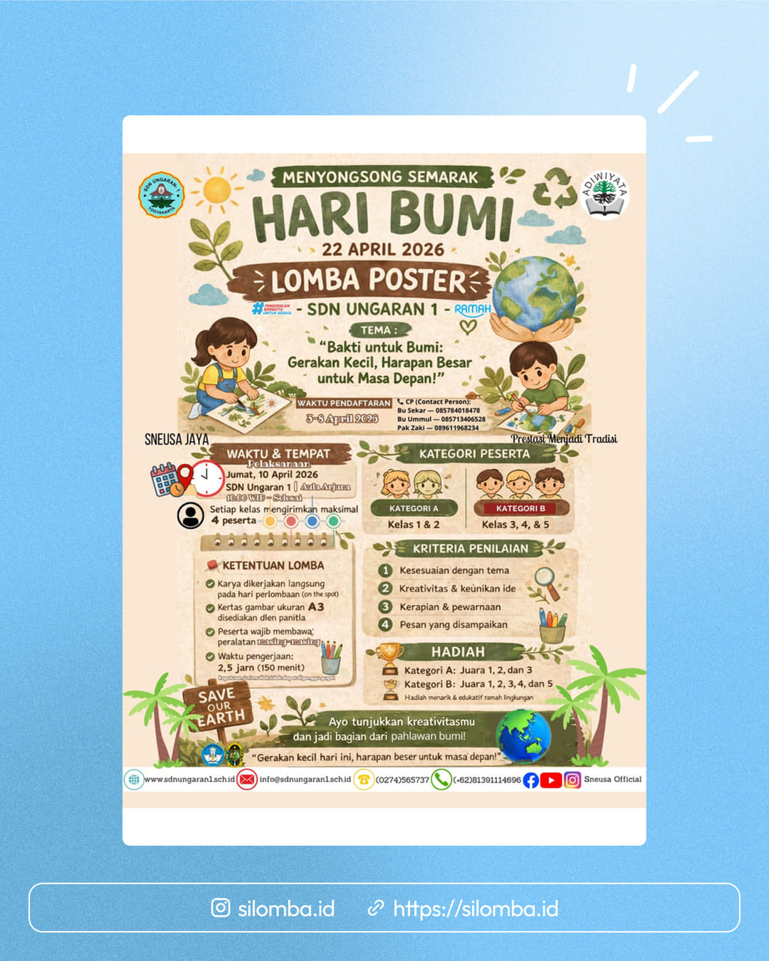 Lomba dikerjakan langsung (on the spot)Kertas A3 disediakan panitiaMembawa alat gambar masing-masingWaktu pengerjaan 2,5 jam