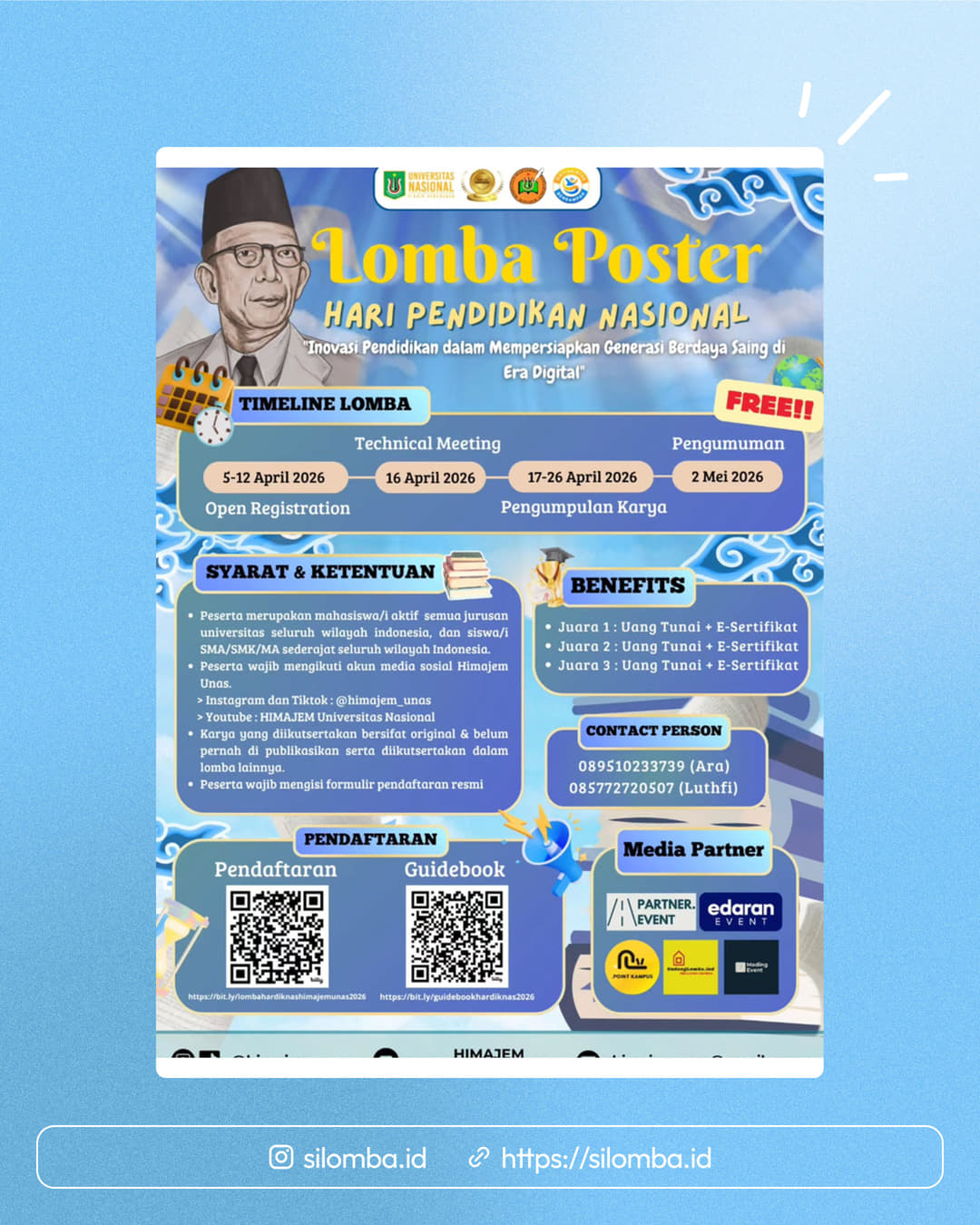 Karya yang diikutsertakan bersifat original & belum pernah di publikasikan serta diikutsertakan dalam lomba lainnya.Peserta wajib mengisi formulir pendaftaran resmi
