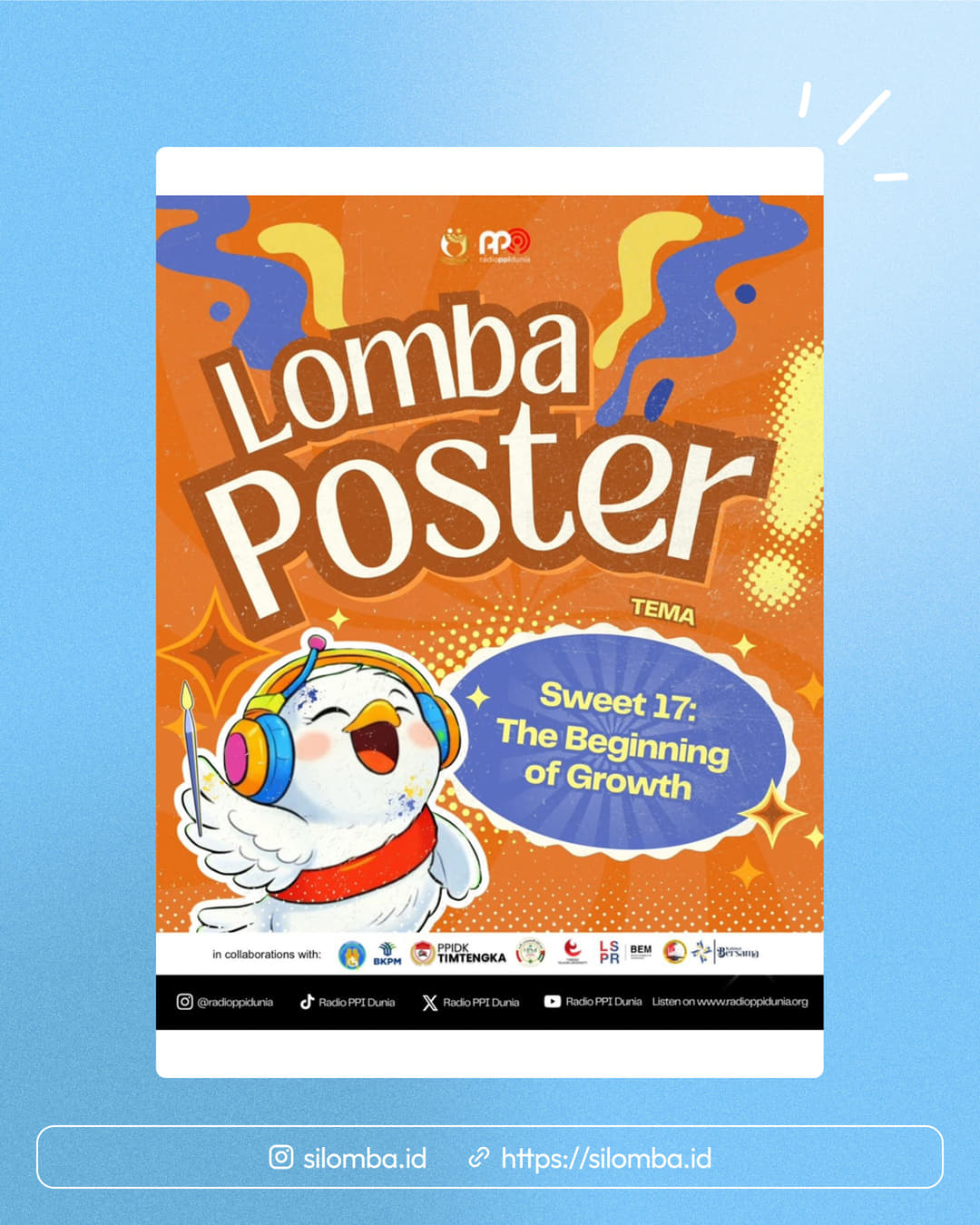 Dalam rangka merayakan 17 tahun perjalanan Radio PPI Dunia, kami mengajak kamu semua untuk ikut berpartisipasi dalam Lomba Poster dengan tema βSweet 17: The Beginning of Growth.β β¨