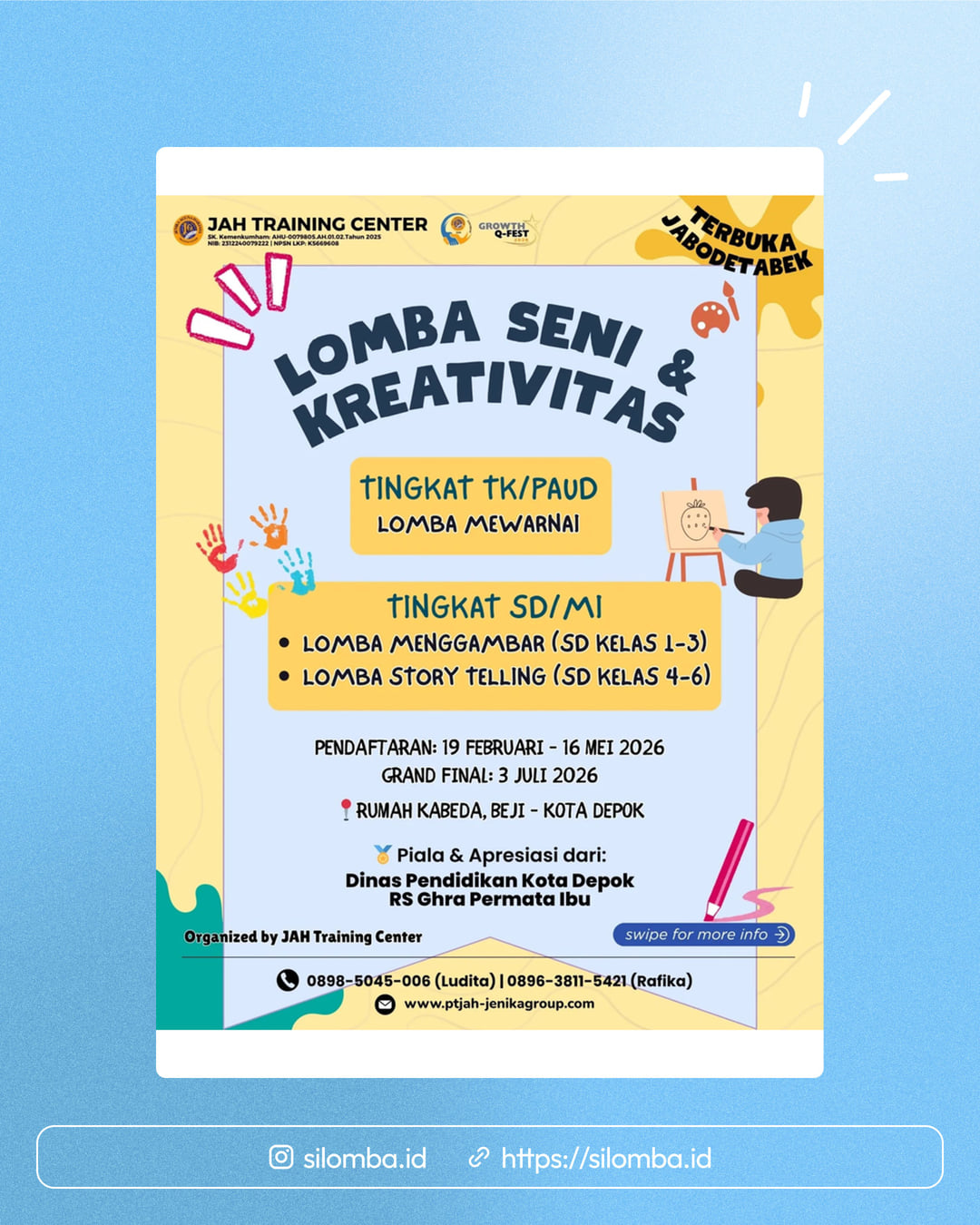 JAH Training Center hadirkan LOMBA SENI & KREATIVITAS 2026 untuk anak-anak TK-PAUD, SD/MI di Jabodetabek!