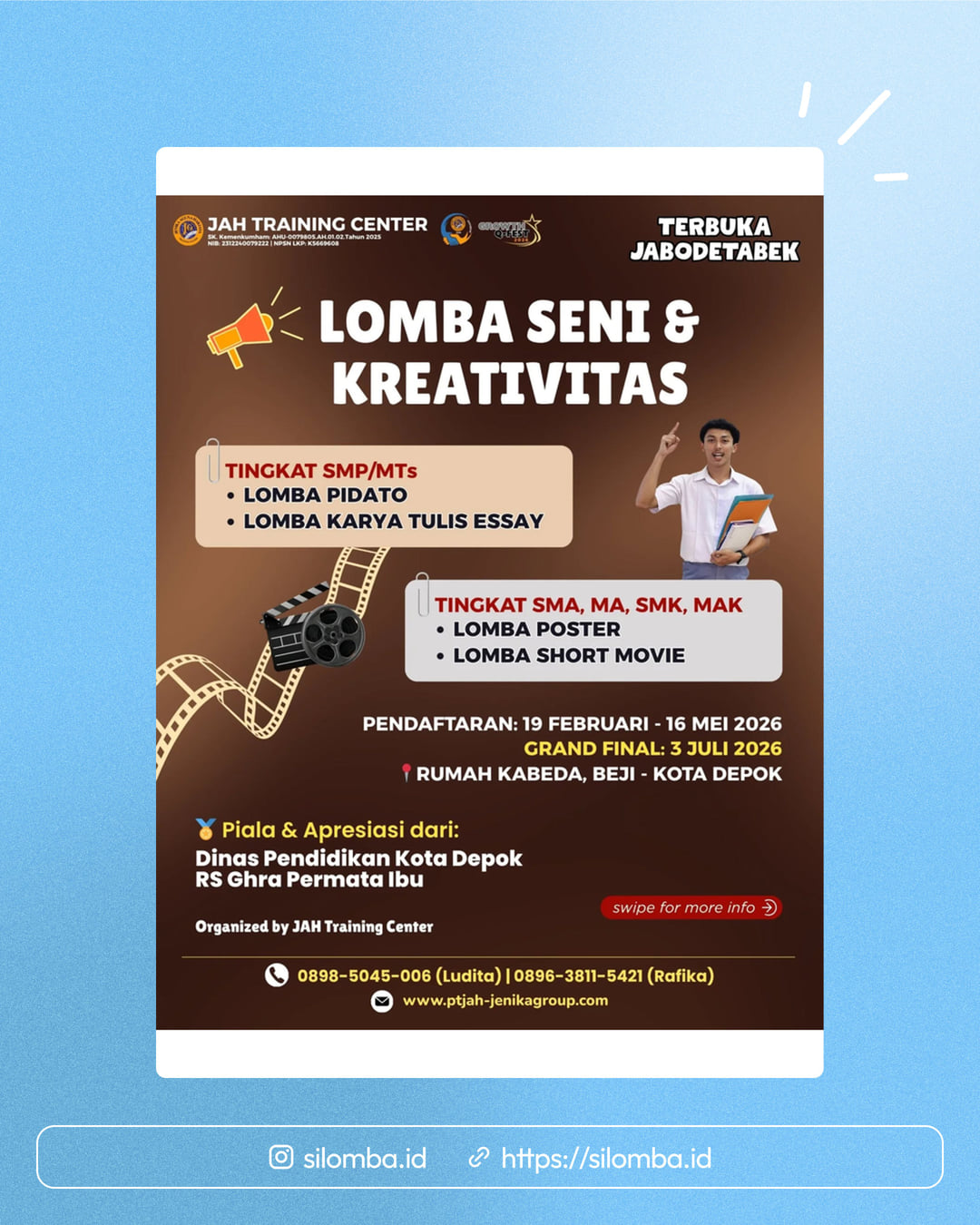 JAH Training Center hadirkan LOMBA SENI & KREATIVITAS 2026 khusus untuk pelajar SMP & SMA/SMK se-JABODETABEK!
