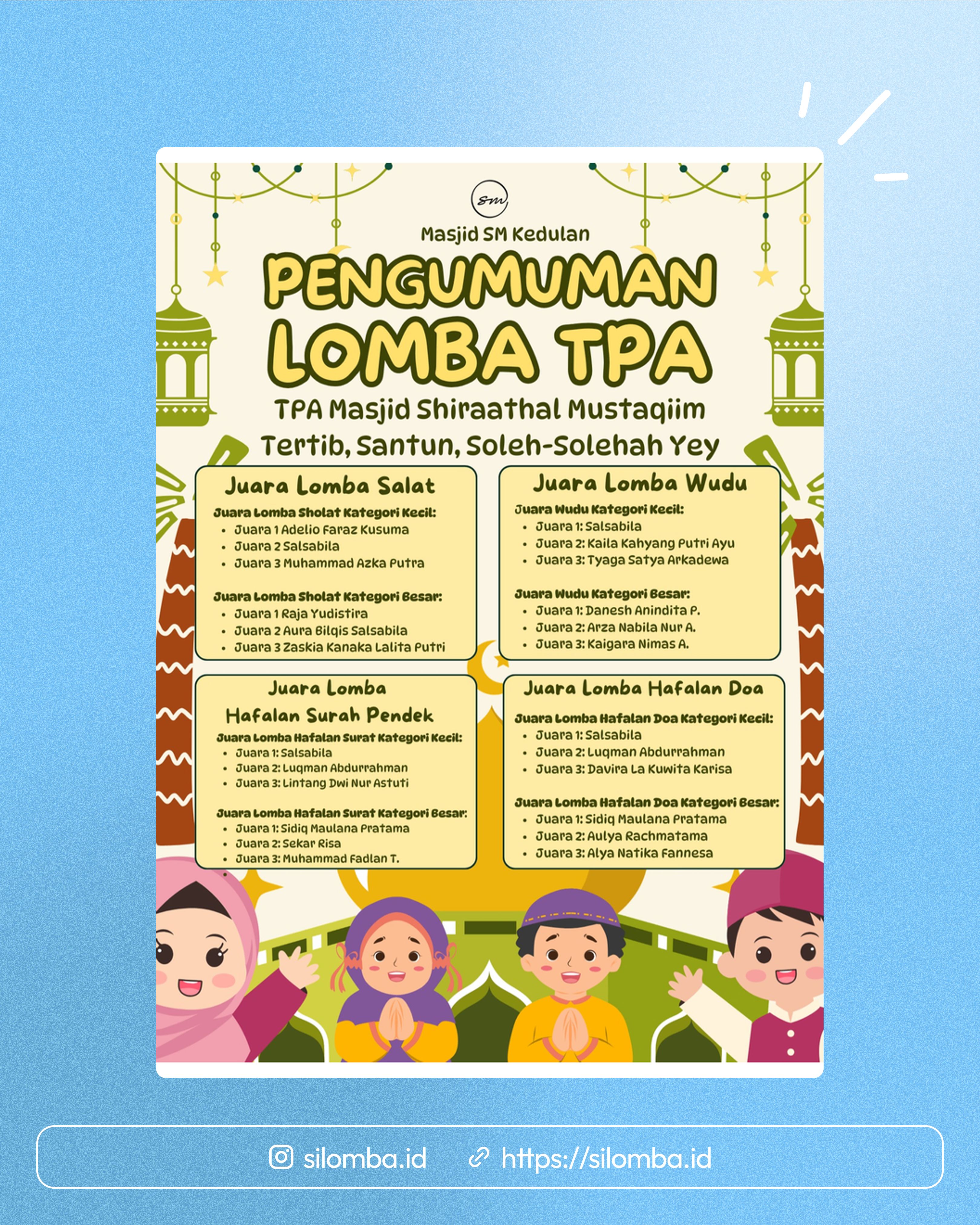 Pengumuman Lomba TPA Masjid Shiraathal Mustaqiim Bulan Ramadan 1447 H / 2026.