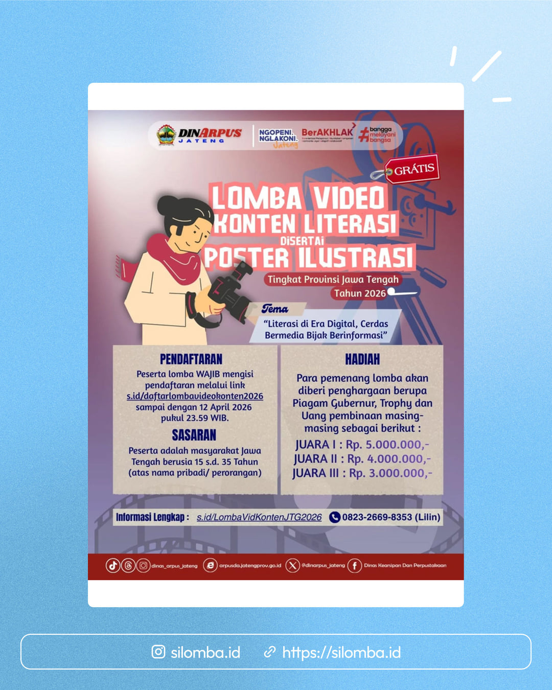Peserta lomba WAJIB mengisi pendaftaran melalui link s.id/daftarLombavideokonten2026