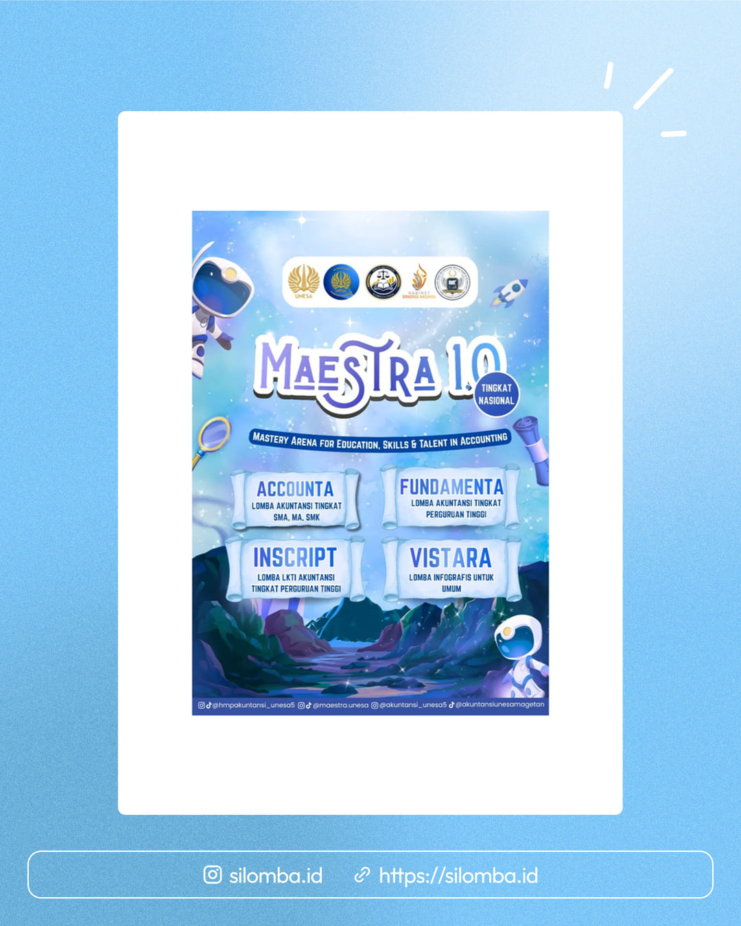 #MAESTRA2026 #LombaNasional #AkuntansiIndonesia #MahasiswaBerprestasi #SiswaBerprestasi LombaMahasiswa LombaSMA VISTARA INSCRIPT FUNDAMENTA ACCOUNTA