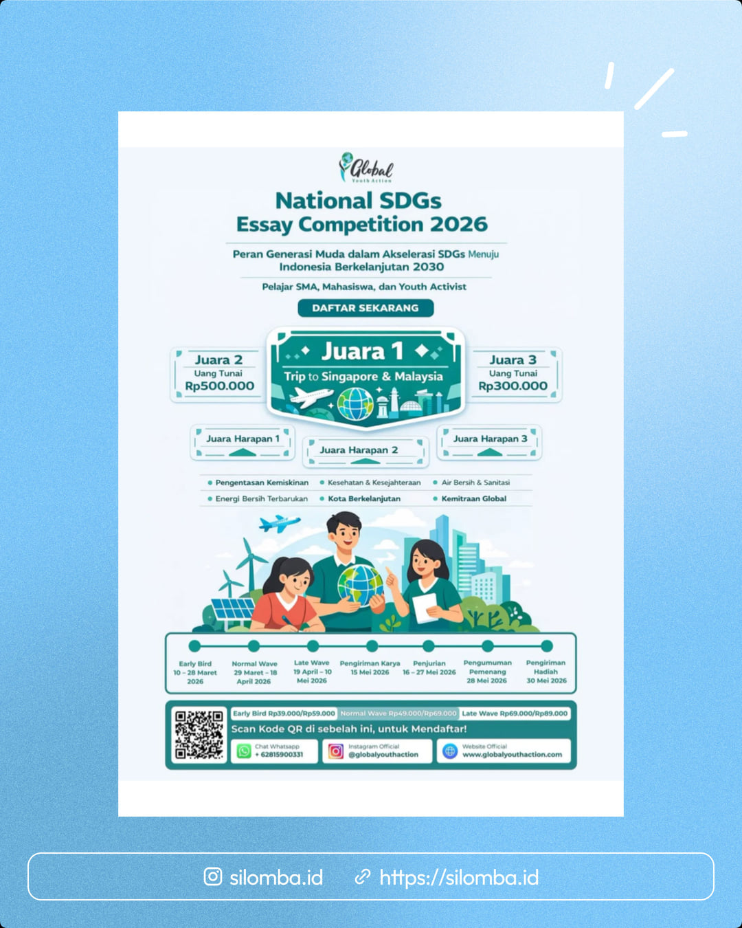 Daftar sekarang melalui QR Code pada poster atau kunjungi https://globalyouthaction.com