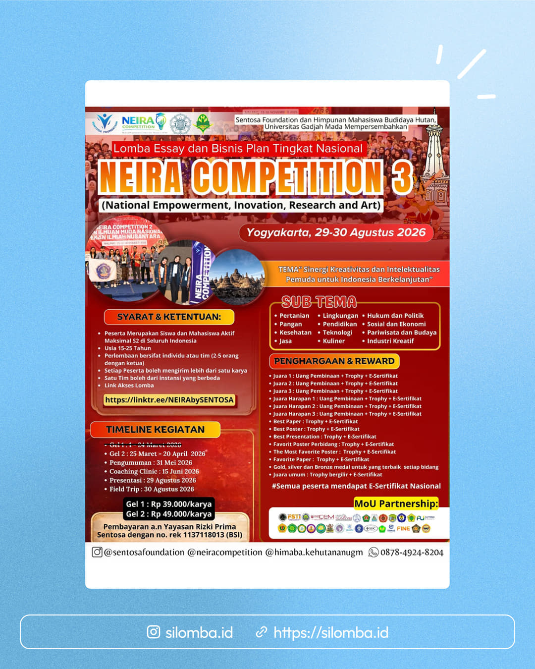 #NEIRACompetition3 #LombaNasional #EssayCompetition #BusinessPlan #MahasiswaIndonesia PelajarBerprestasi Kompetisi2026 YogyakartaEvent