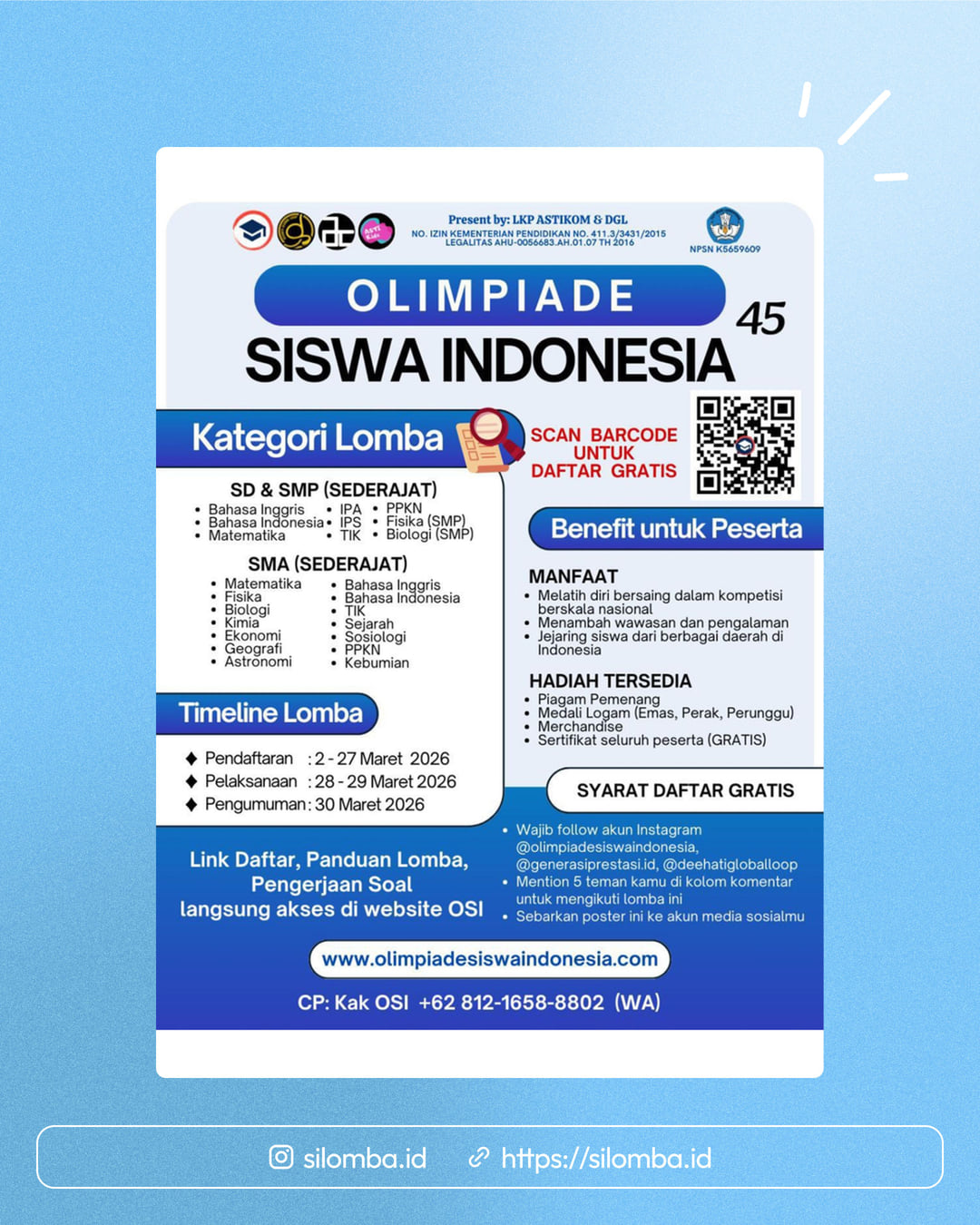 Silomba hanya media informasi lomba. Untuk info lebih lanjut, silakan hubungi penyelenggara.