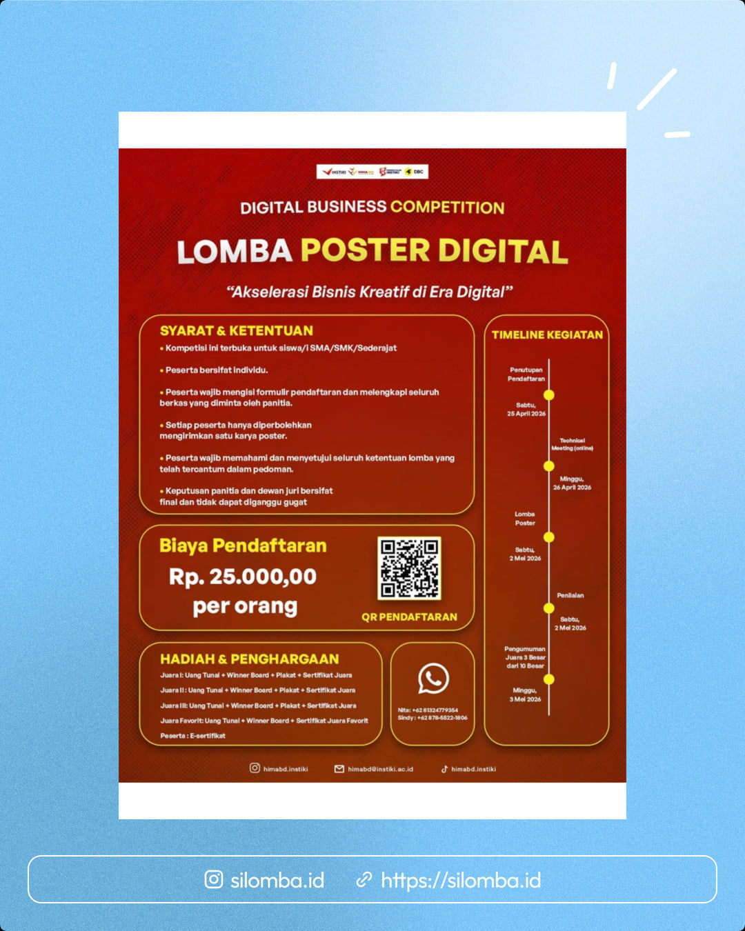Kompetisi ini jadi kesempatan buat kamu menuangkan ide kreatif dalam bentuk poster digital yang inspiratif dan inovatif!
