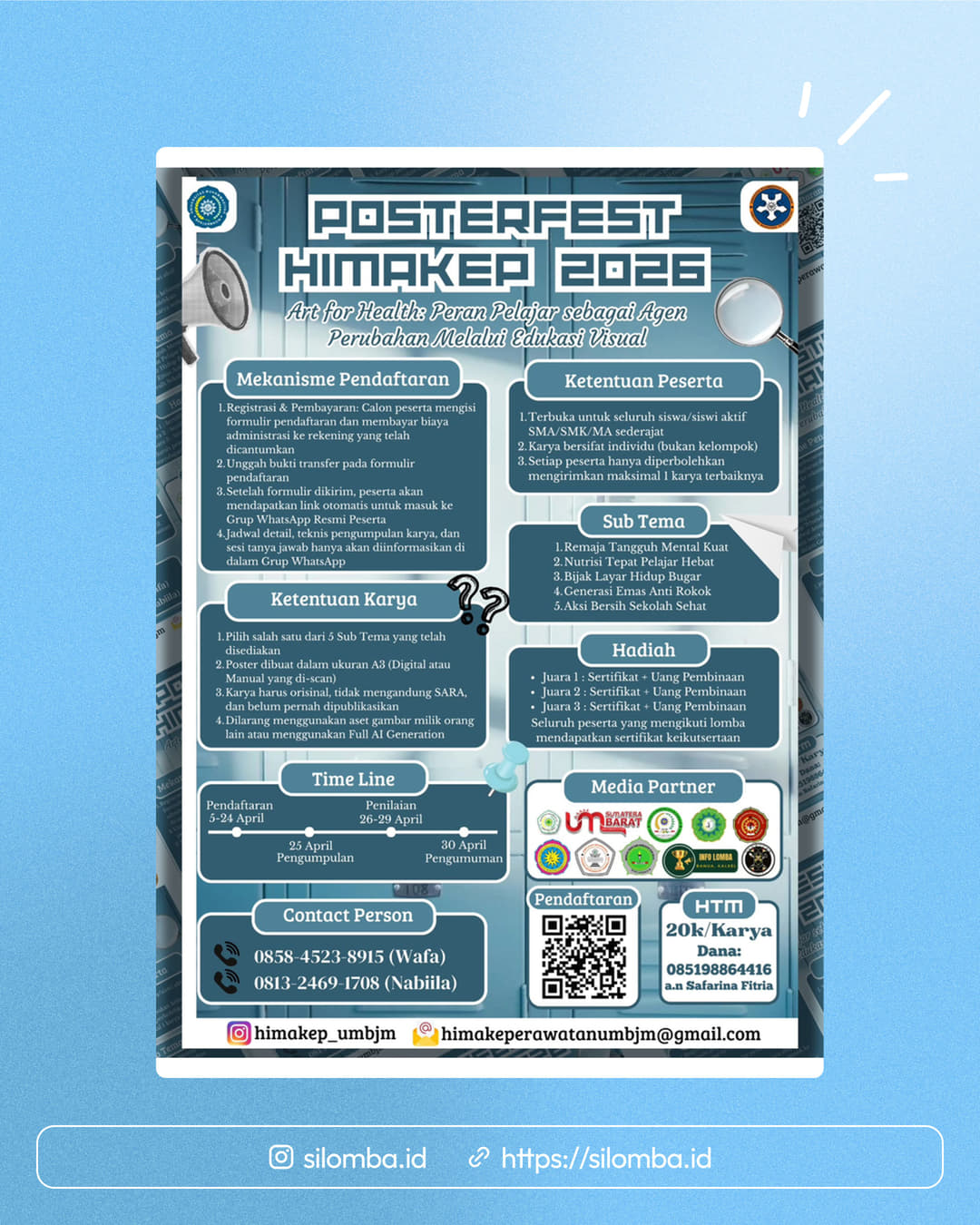 Poster ukuran A3 (Digital atau Manual yang di-scan)Tidak mengandung SARAMenggunakan aset gambar milik orang lain atau menggunakan Full AI Generation
