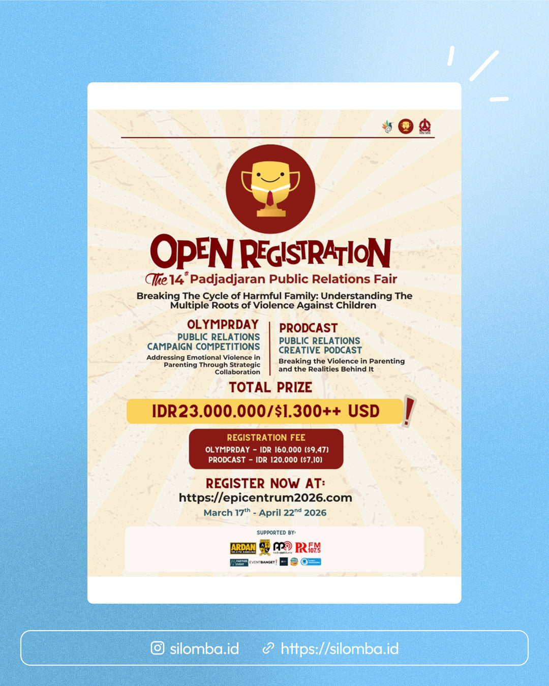 Silomba hanya media informasi lomba. Untuk info lebih lanjut, silakan hubungi penyelenggara.