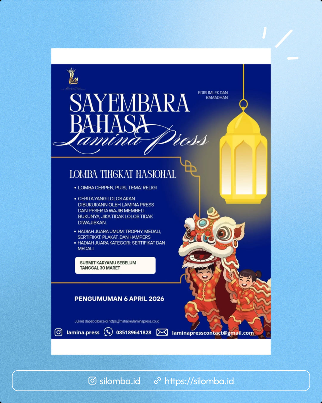 #LaminaPress #SayembaraBahasa #LombaMenulis #LombaCerpen #LombaPuisi