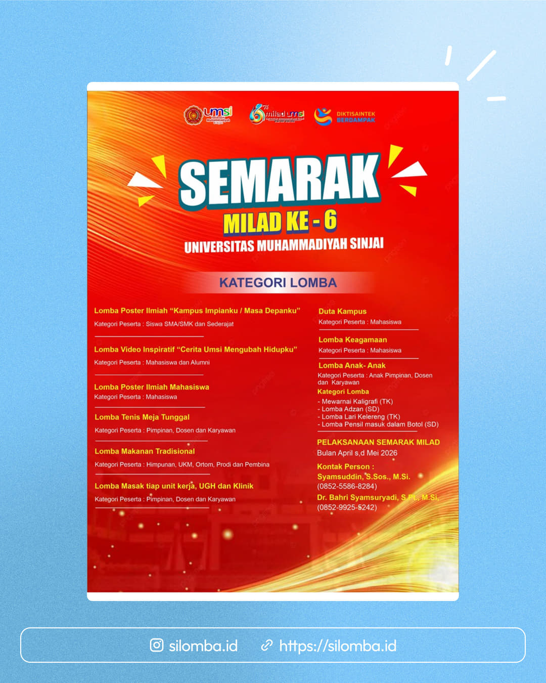 Silomba hanya media informasi lomba. Untuk info lebih lanjut, silakan hubungi penyelenggara.