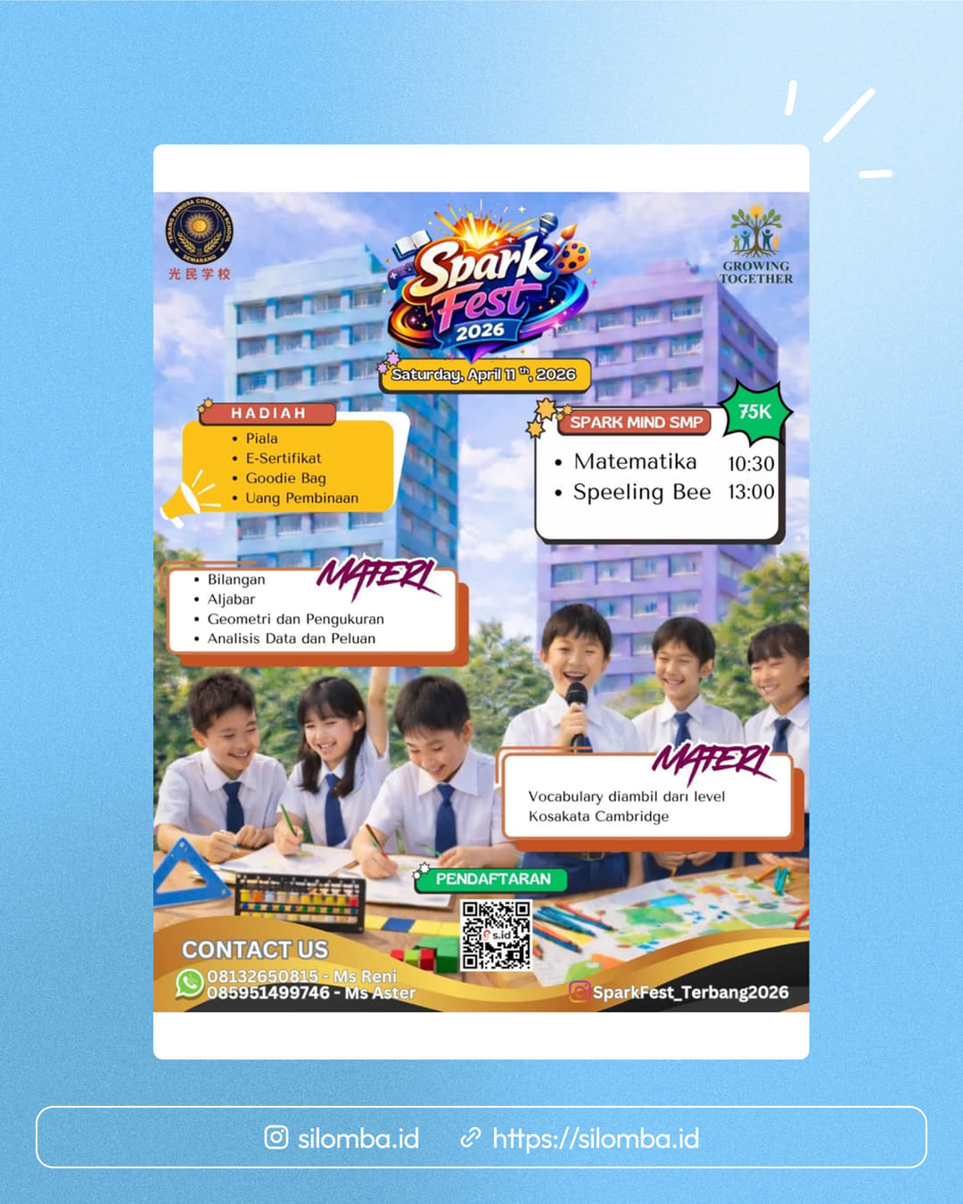 Masih ada peluang besar untuk menang!! Yuk, buruan daftar 🤓 #sparkfest2026 #sparkmind #lombamatematika #lombaspellingbee #lombamenyanyi Silomba hanya media informasi lomba. Untuk info lebih lanjut, silakan hubungi penyelenggara.