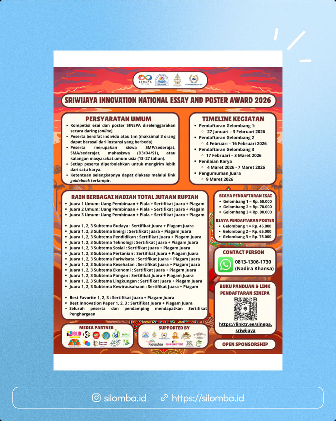 πβ¨ SRIWIJAYA INNOVATION NATIONAL ESSAY & POSTER AWARD 2026 (SINEPA 2026) β¨π