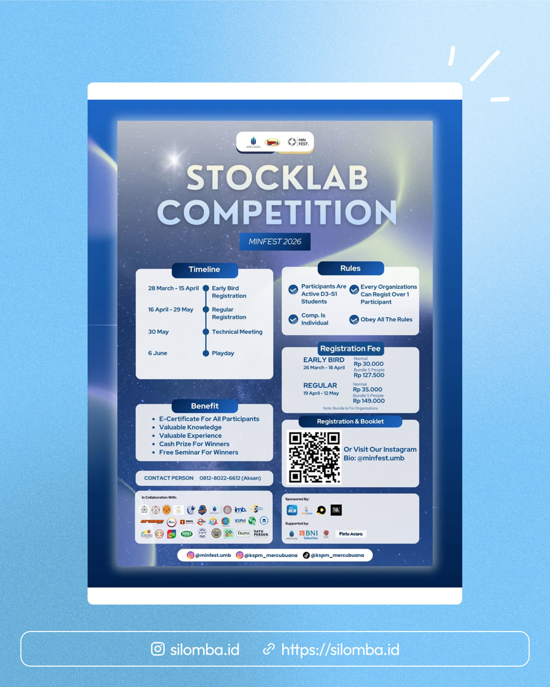 Stocklab Competition Registration Is Now Open! Link Regist In Our Bio! Follow minfest.umb for more updates. #MINFEST #KSPM #UMB #Lomba #Seminar Silomba hanya media informasi lomba. Untuk info lebih lanjut, silakan hubungi penyelenggara.