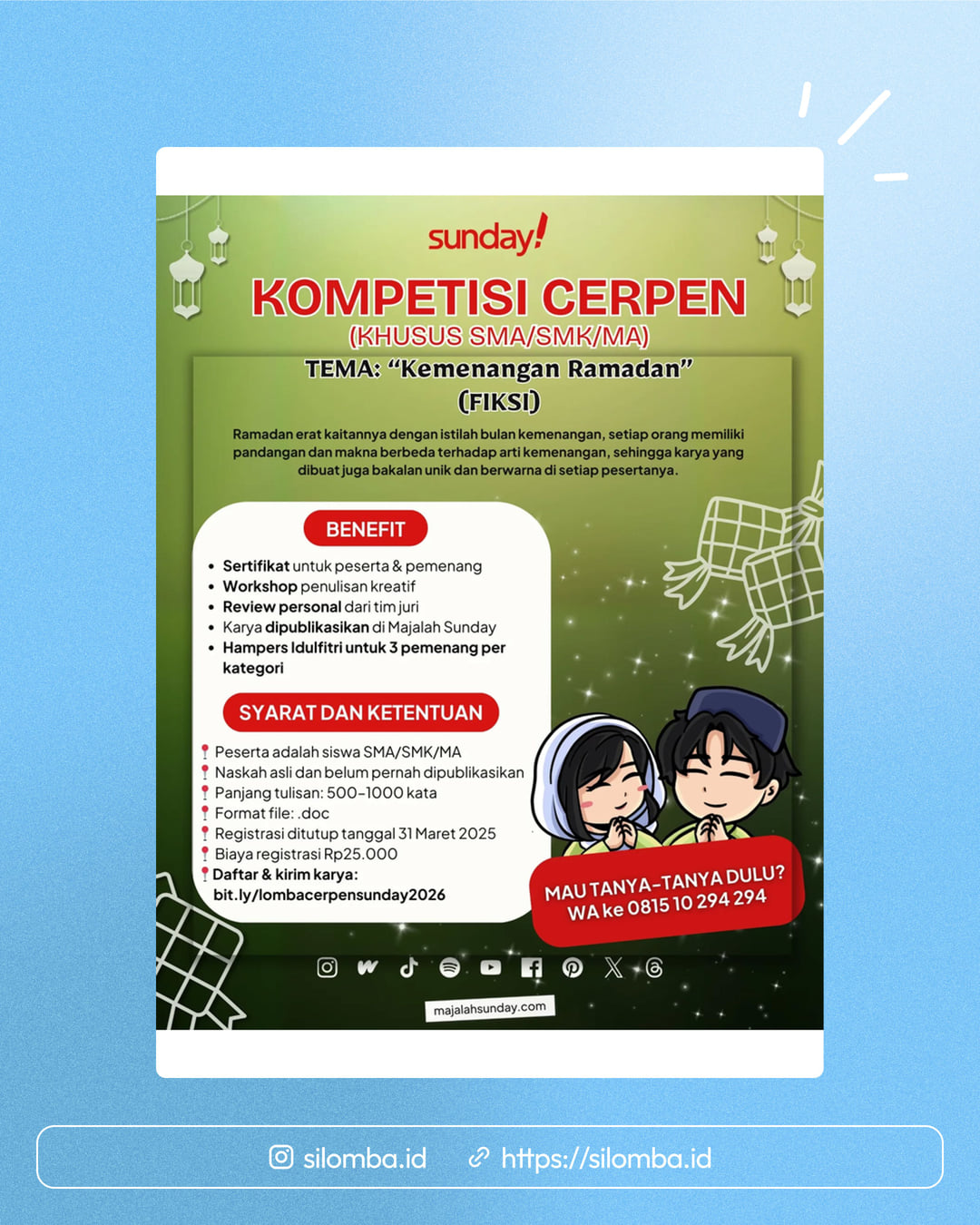 #Lebaran2026 #LombaMenulis #LombaMahasiswa #MajalahSunday #EmpoweringTeenagers