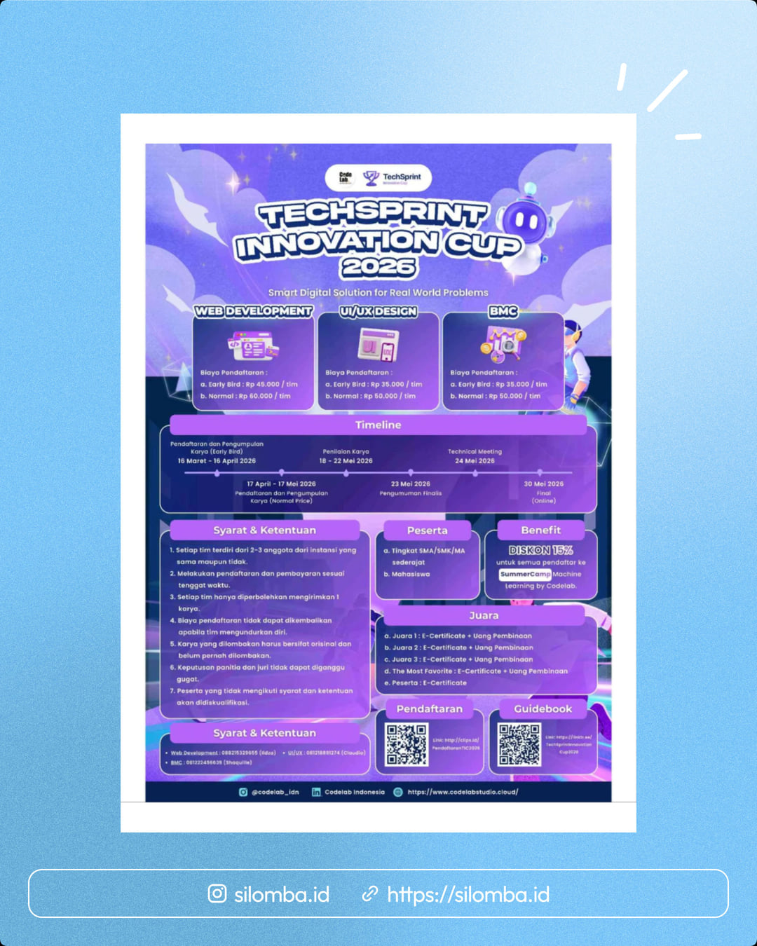 Punya ide digital yang bisa menyelesaikan masalah nyata? Saatnya kamu buktikan di ajang *TechSprint Innovation Cup 2026*! π‘β¨