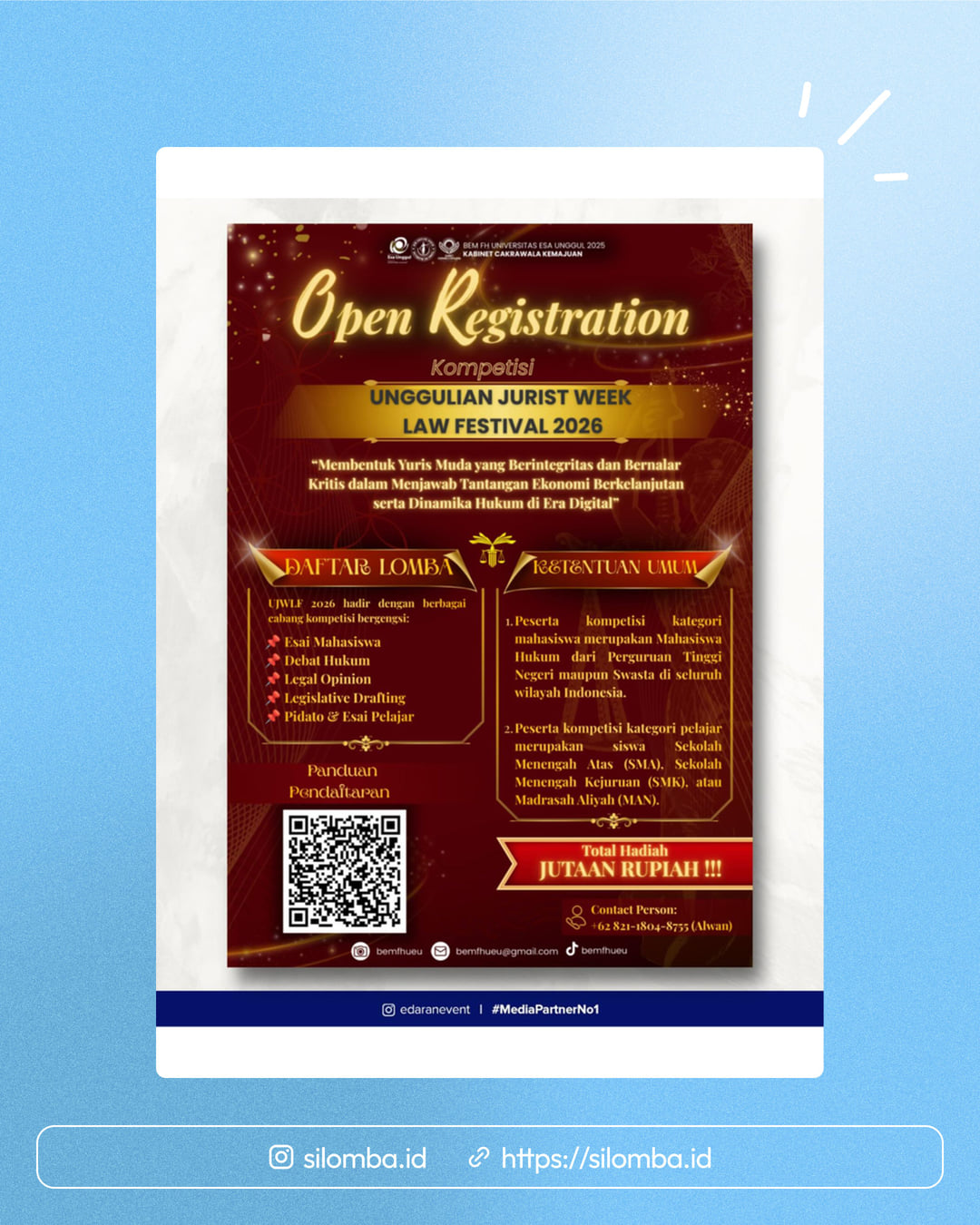 Mahasiswa hukum dari perguruan tinggi negeri maupun swasta di seluruh Indonesia.